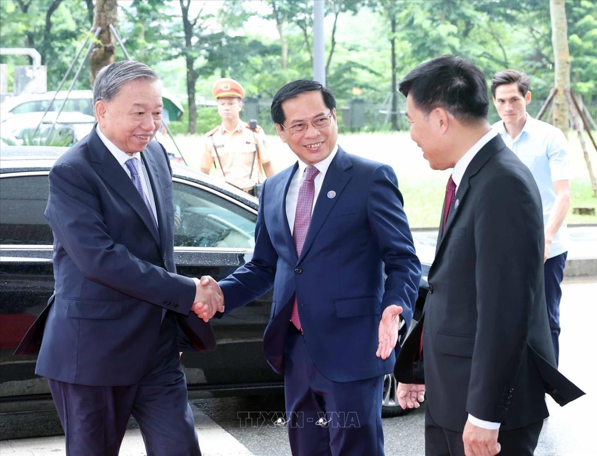 Phó Thủ tướng, Bộ trưởng Bộ Ngoại giao Bùi Thanh Sơn đón Tổng Bí thư Tô Lâm (25/8/2025). Ảnh: An Đăng - TTXVN