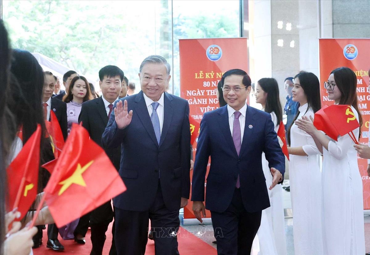 Tổng Bí thư Tô Lâm đến dự Lễ kỷ niệm 80 năm ngày thành lập ngành Ngoại giao (25/8/2025). Ảnh: An Đăng - TTXVN