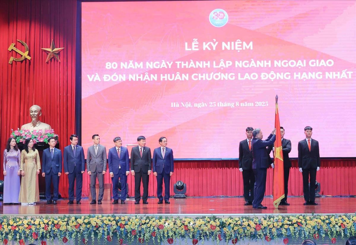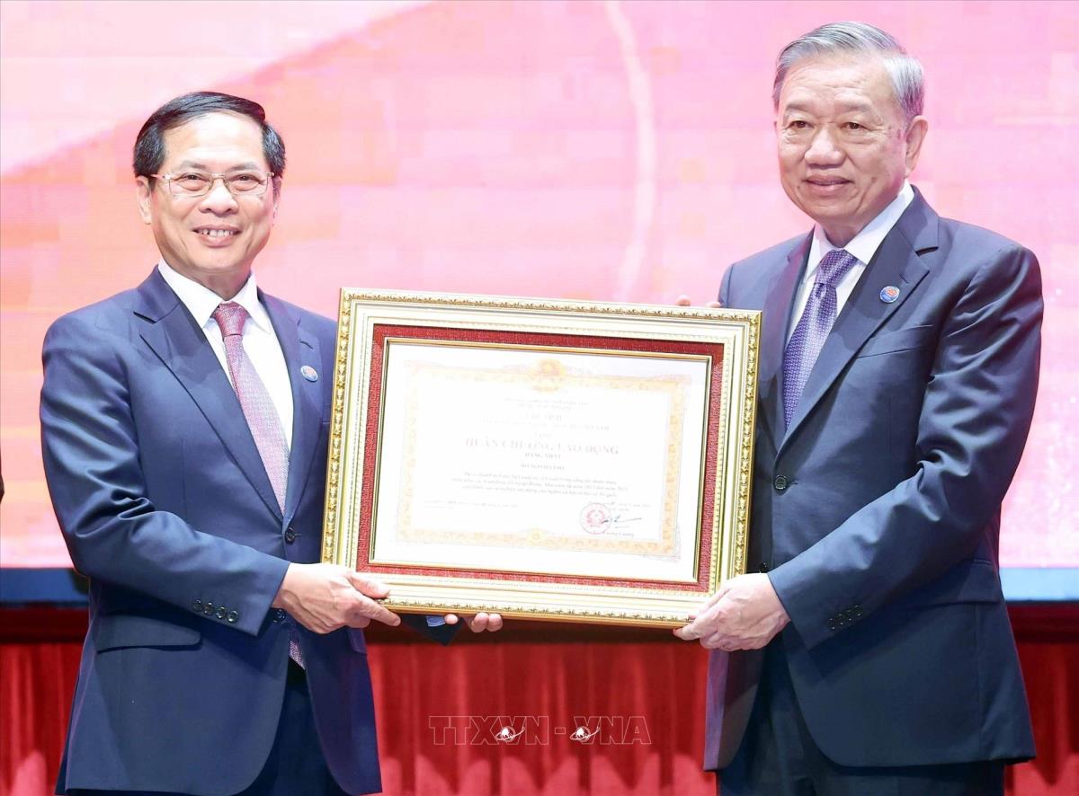 Tổng Bí thư Tô Lâm trao tặng Huân chương Lao động hạng Nhất cho Bộ Ngoại giao (25/8/2025). Ảnh: An Đăng -TTXVN