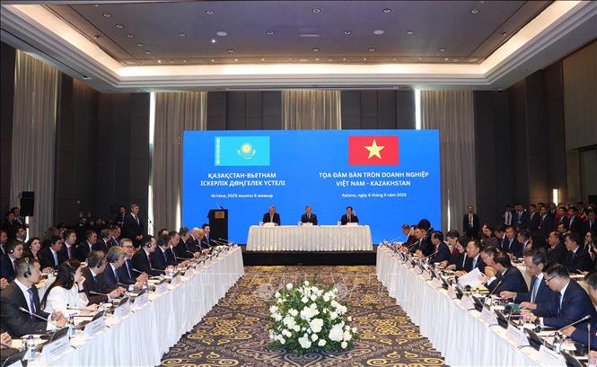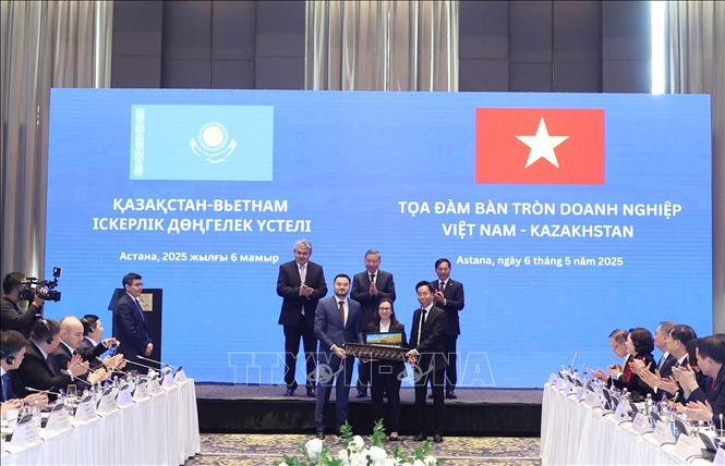 Hà Nội (TTXVN 6/5/2025) Theo đặc phái viên TTXVN, trong khuôn khổ chuyến thăm cấp Nhà nước Cộng hòa Kazakhstan, sáng 6/5, Tổng Bí thư Tô Lâm và Đoàn đại biểu cấp cao Việt Nam đã dự Tọa đàm bàn tròn Doanh nghiệp Việt Nam – Kazakhstan do Bộ Tài chính Việt Nam, Bộ Ngoại giao Kazakhstan, Đại sứ quán Việt Nam tại Kazakhstan phối hợp tổ chức.