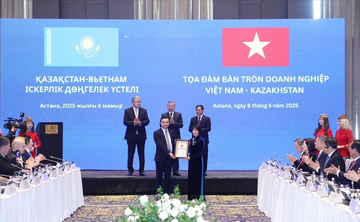 Hà Nội (TTXVN 6/5/2025) Trong chương trình thăm cấp Nhà nước tới Cộng hòa Kazakhstan, sáng 6/5/2025, tại thủ đô Astana, Tổng Bí thư Tô Lâm dự Toạ đàm bàn tròn doanh nghiệp Việt Nam - Kazakhstan.