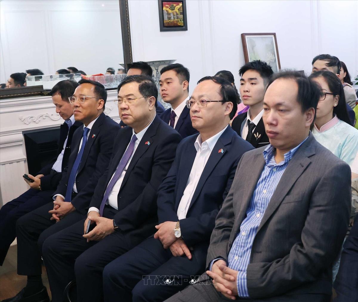 Đại biểu đoàn Việt Nam tham dự buổi gặp gỡ của Tổng Bí thư Tô Lâm với cán bộ Đại sứ quán và cộng đồng người Việt Nam tại Kazakhstan (5/5/2025). Ảnh: Thống Nhất -TTXVN