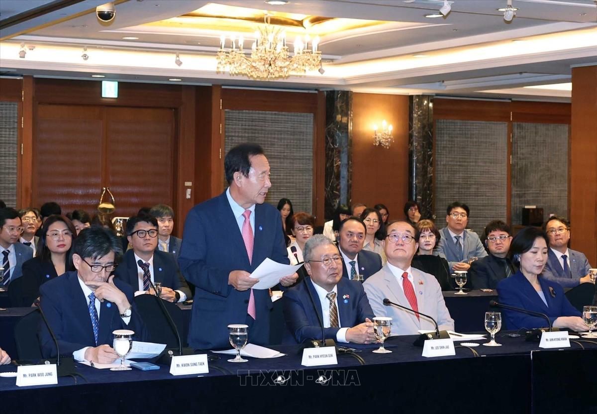 Các đại biểu Hàn Quốc tham dự buổi gặp mặt (10/8/2025). Ảnh: Thống Nhất - TTXVN