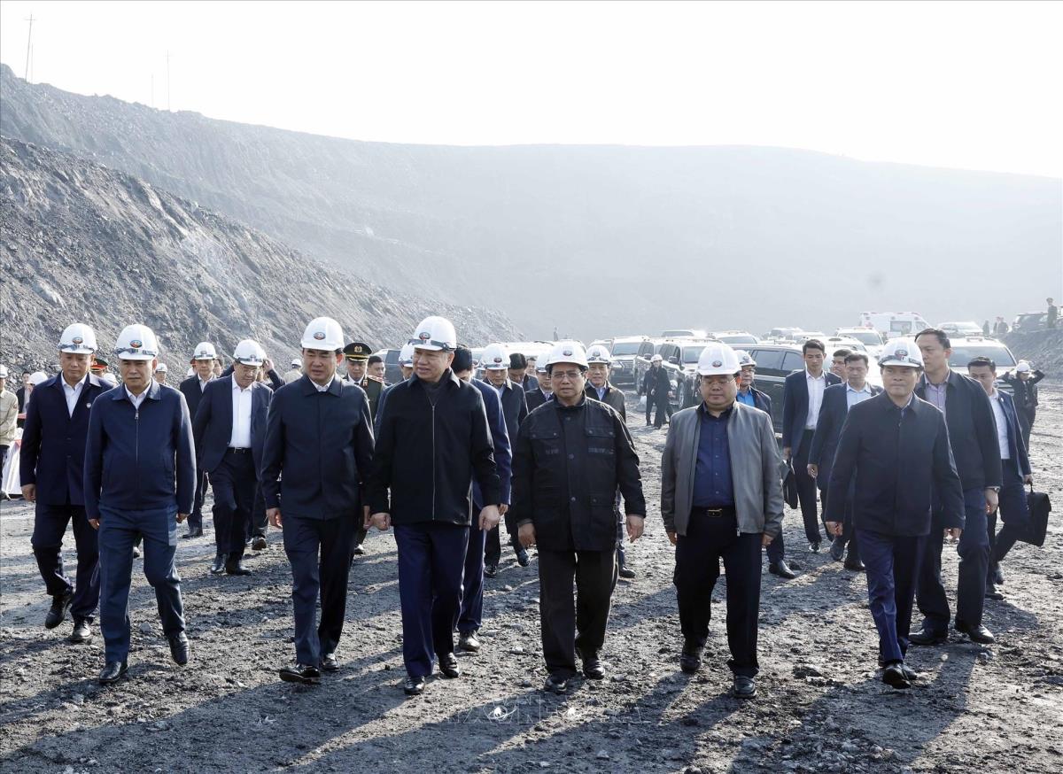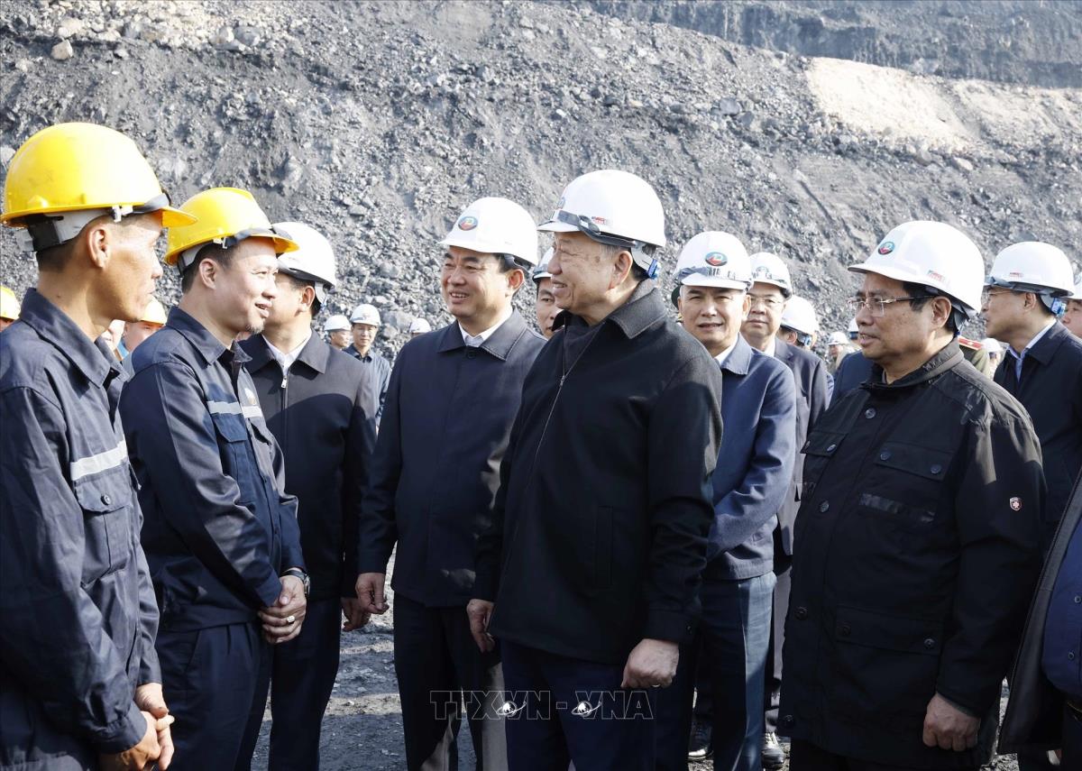 Tổng Bí thư Tô Lâm, Thủ tướng Phạm Minh Chính thăm khai trường khai thác than của Công ty Cổ phần Than Đèo Nai – Cọc Sáu, Tập đoàn Công nghiệp Than và Khoáng sản Việt Nam, tại tỉnh Quảng Ninh (27/1/2026). Ảnh: Thống Nhất -TTXVN