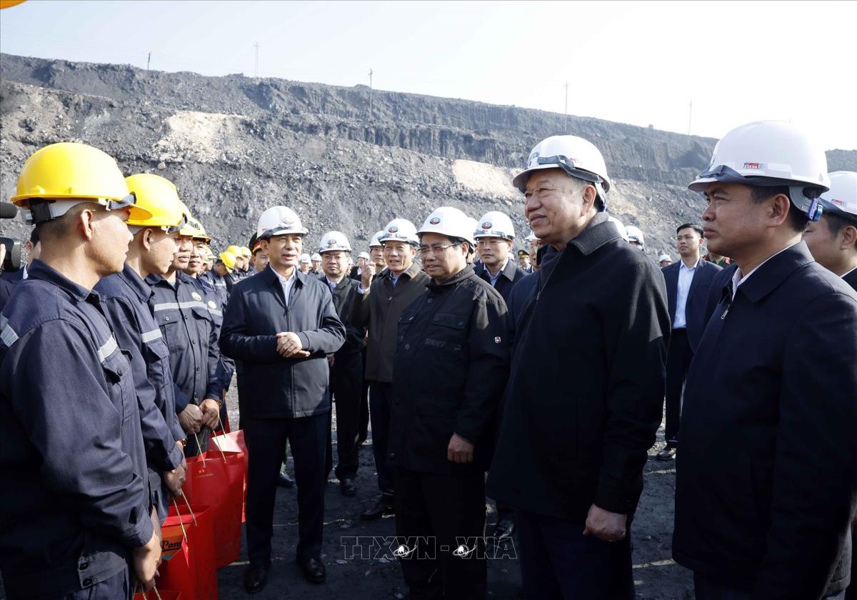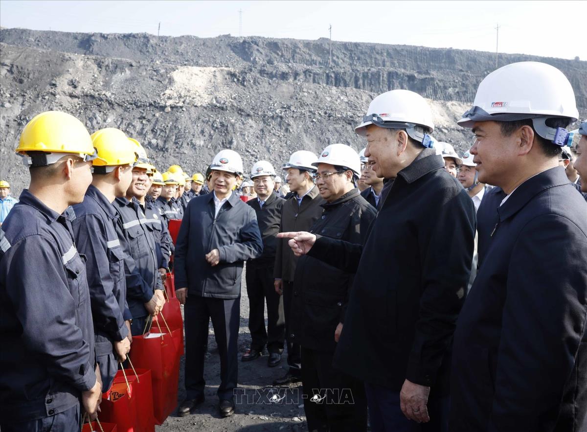 Tổng Bí thư Tô Lâm, Thủ tướng Phạm Minh Chính thăm, động viên cán bộ, công nhân trực tiếp sản xuất tại Công ty Cổ phần Than Đèo Nai – Cọc Sáu, Tập đoàn Công nghiệp Than và Khoáng sản Việt Nam, tại tỉnh Quảng Ninh (27/1/2026). Ảnh: Thống Nhất -TTXVN