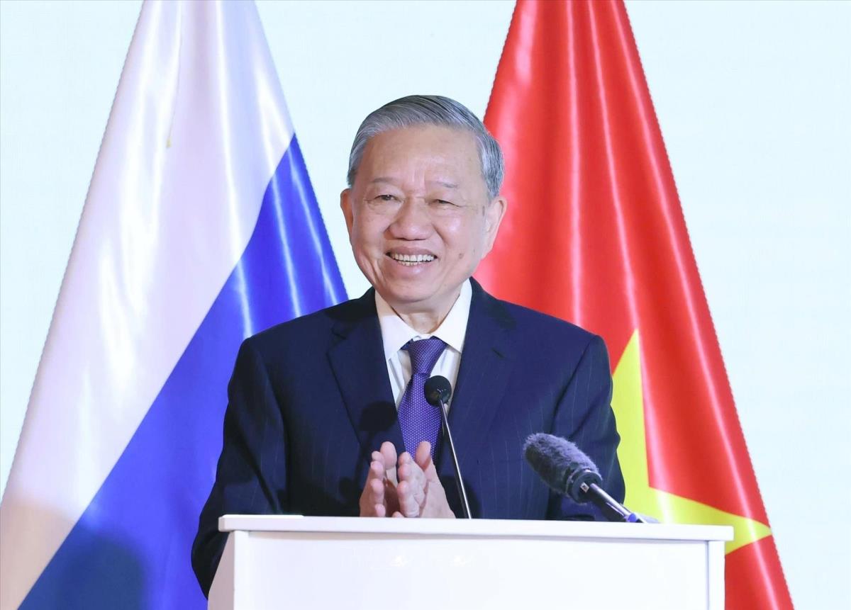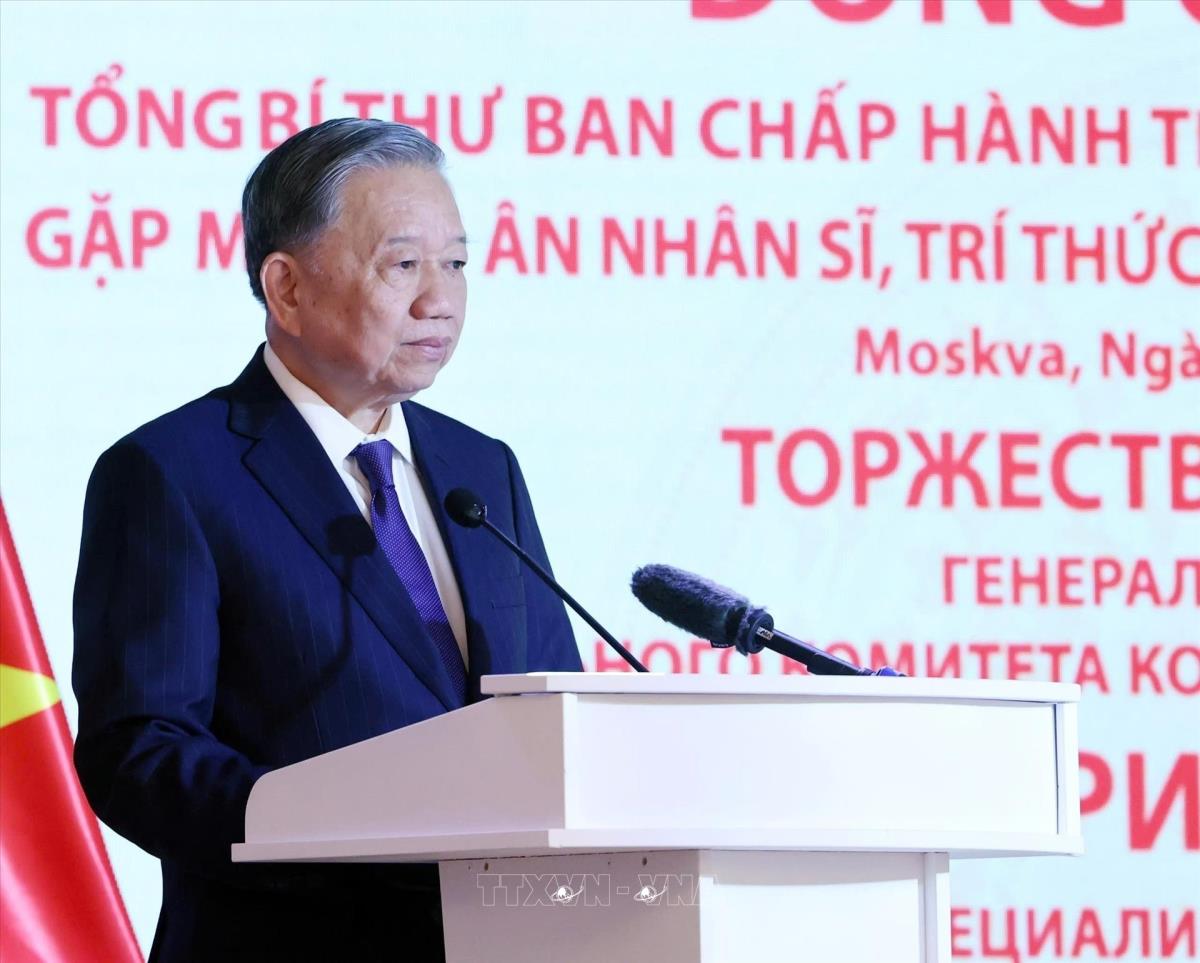 Tổng Bí thư Tô Lâm phát biểu tại buổi gặp mặt tri ân các nhân sĩ, trí thức, chuyên gia Nga từng giúp đỡ Việt Nam (11/5/2025). Ảnh: Thống Nhất – TTXVN