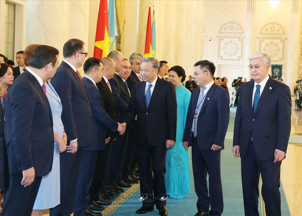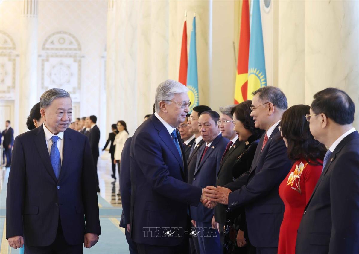 Tổng thống Kazakhstan Kassym-Jomart Tokayev đón Tổng Bí thư Tô Lâm và Phu nhân (6/5/2025). Ảnh: Thống Nhất – TTXVN