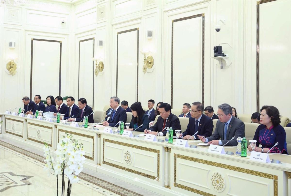 Chủ tịch Quốc hội Sahiba Gafarova và đoàn Azerbaijan tại cuộc hội kiến Tổng Bí thư Tô Lâm (8/5/2025). Ảnh: Thống Nhất – TTXVN