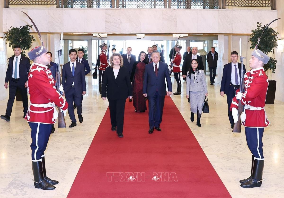 Hà Nội (TTXVN 24/10/2025) Chiều 24/10/2025 (theo giờ địa phương), tại Thủ đô Sofia, Tổng Bí thư Tô Lâm hội kiến Chủ tịch Quốc hội Bulgaria Nataliya Kiselova.