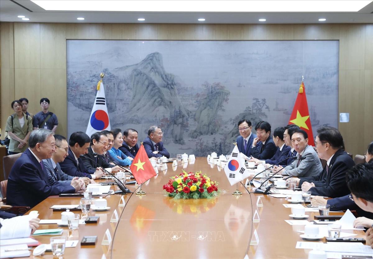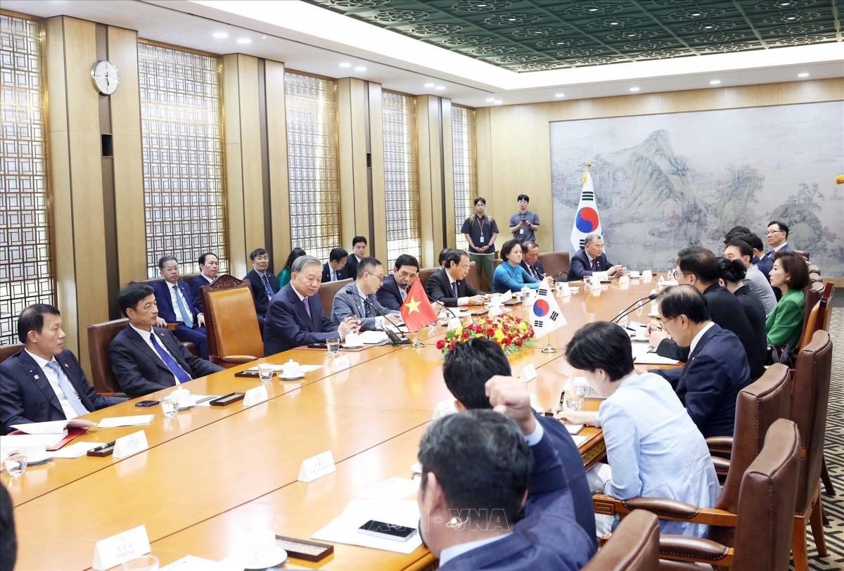 Hà Nội (TTXVN 12/8/2025) Trong chương trình chuyến thăm cấp Nhà nước tới Hàn Quốc, chiều 12/8/2025, Tổng Bí thư Tô Lâm hội kiến Chủ tịch Quốc hội Hàn Quốc Woo Won Sik.
