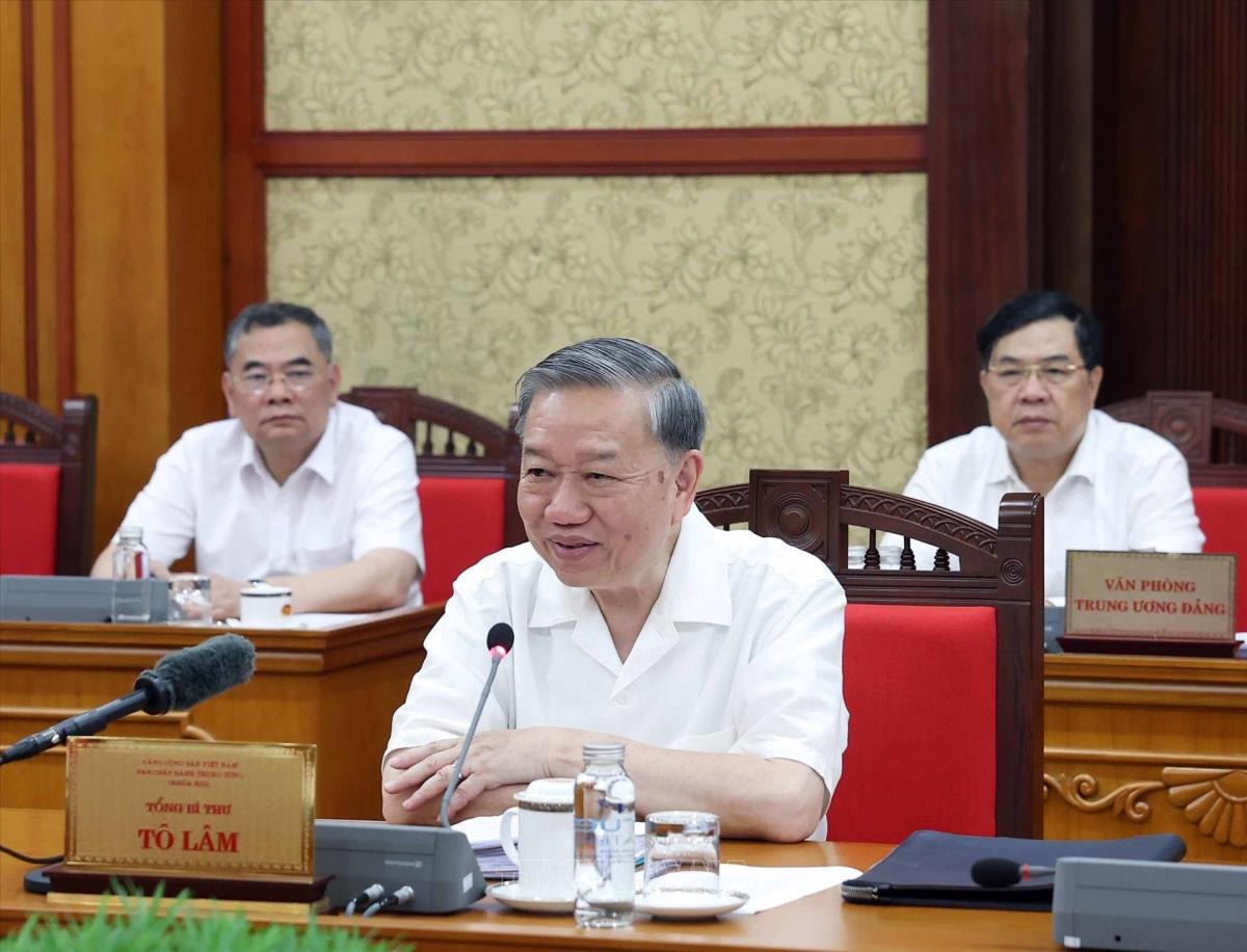 Sau khi nghe báo cáo tóm tắt việc triển khai và tình hình lấy ý kiến của nhân dân, các ngành, các cấp về nội dung sửa đổi, bổ sung một số điều của Hiến pháp năm 2013 cũng như các ý kiến tại cuộc họp, Tổng Bí thư Tô Lâm phát biểu, yêu cầu, thời gian tới, Ban Bí thư đề nghị Đảng ủy Quốc hội, Đảng ủy Chính phủ, Đảng ủy Mặt trận Tổ quốc, các đoàn thể Trung ương, Ban Tuyên giáo và Dân vận Trung ương, các cơ quan theo chức năng, nhiệm vụ được giao tiếp tục lãnh đạo, chỉ đạo chặt chẽ các công việc, nhất là việc lấy ý kiến nhân dân về nội dung sửa đổi, bổ sung Hiến pháp năm 2013, đảm bảo đúng tiến độ, để trình Quốc hội theo đúng chương trình của kỳ họp.