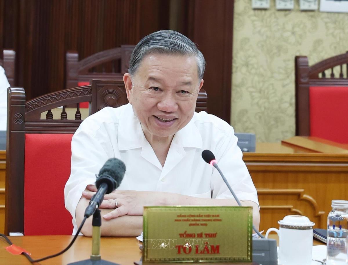 Hà Nội (TTXVN 13/5/2025) Chiều 13/5, tại Trụ sở Trung ương Đảng, Tổng Bí thư Tô Lâm chủ trì cuộc họp Ban Bí thư về việc triển khai và tình hình lấy ý kiến nhân dân, các ngành, các cấp về nội dung sửa đổi, bổ sung một số điều của Hiến pháp năm 2013.