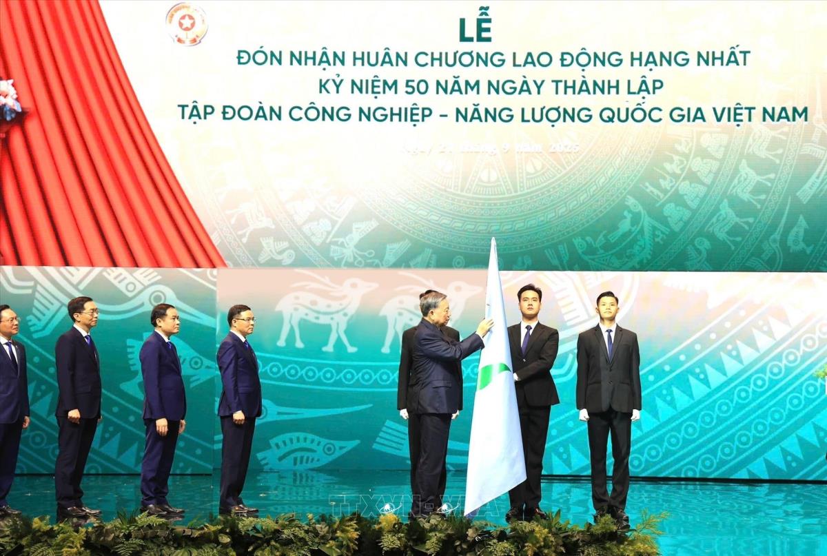 Tại Lễ kỷ niệm, ghi nhận những đóng góp quan trọng đối với đất nước, thay mặt lãnh đạo Đảng, Nhà nước, Tổng Bí thư Tô Lâm đã trao Huân chương Lao động Hạng Nhất cho Tập đoàn Công nghiệp - Năng lượng Quốc gia Việt Nam.