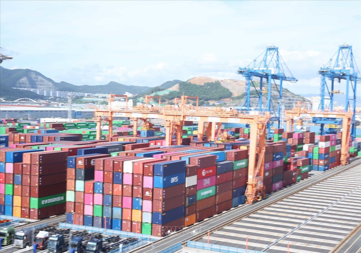 Cảng tự động hoá DGT (Dongwon Global Terminal Busan), một trong những bến container mới nhất tại cảng Busan - cảng biển lớn nhất ở Hàn Quốc (13/8/2025). Ảnh: Thống Nhất – TTXVN