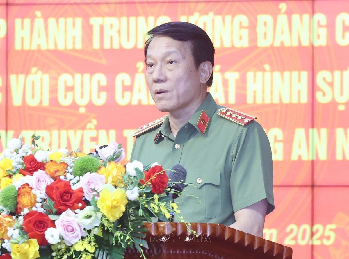 Đại tướng Lương Tam Quang, Bộ trưởng Bộ Công an phát biểu (8/8/2025). Ảnh: Thống Nhất – TTXVN
