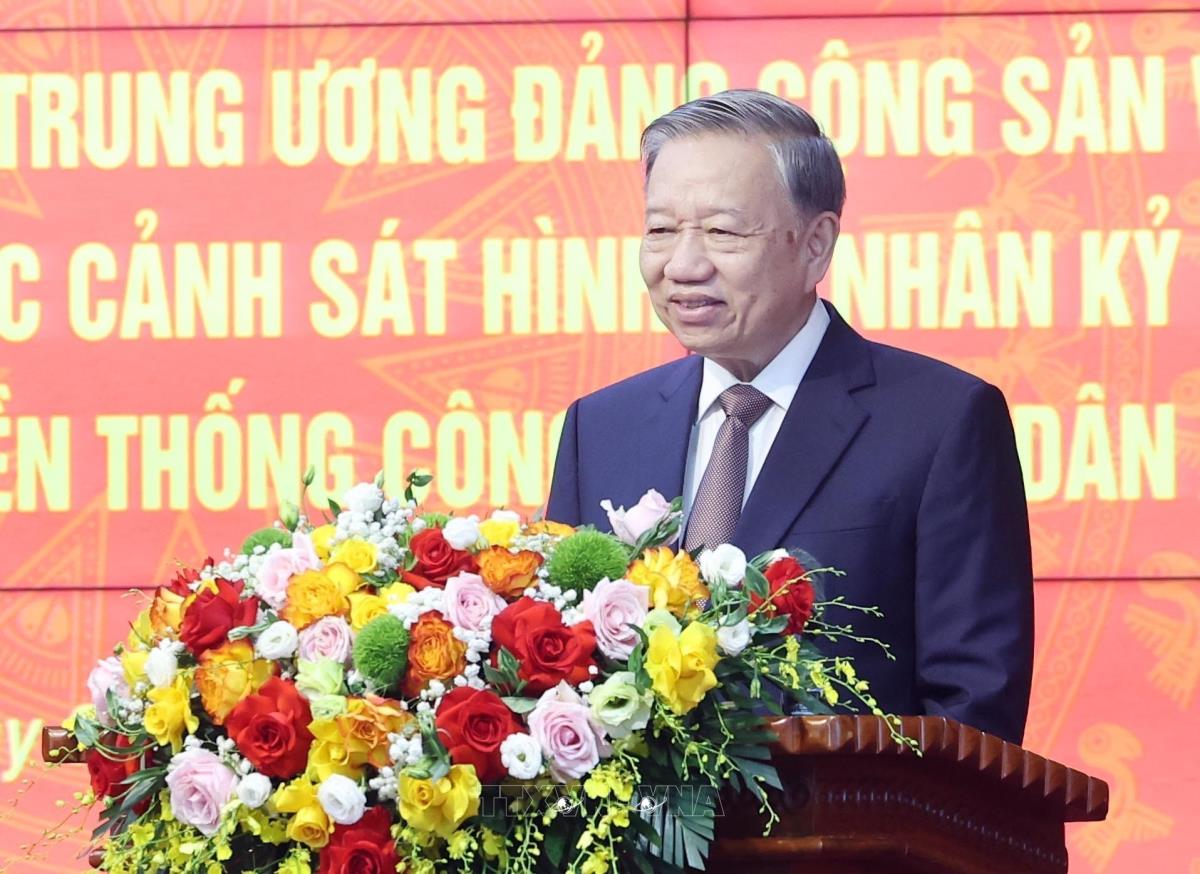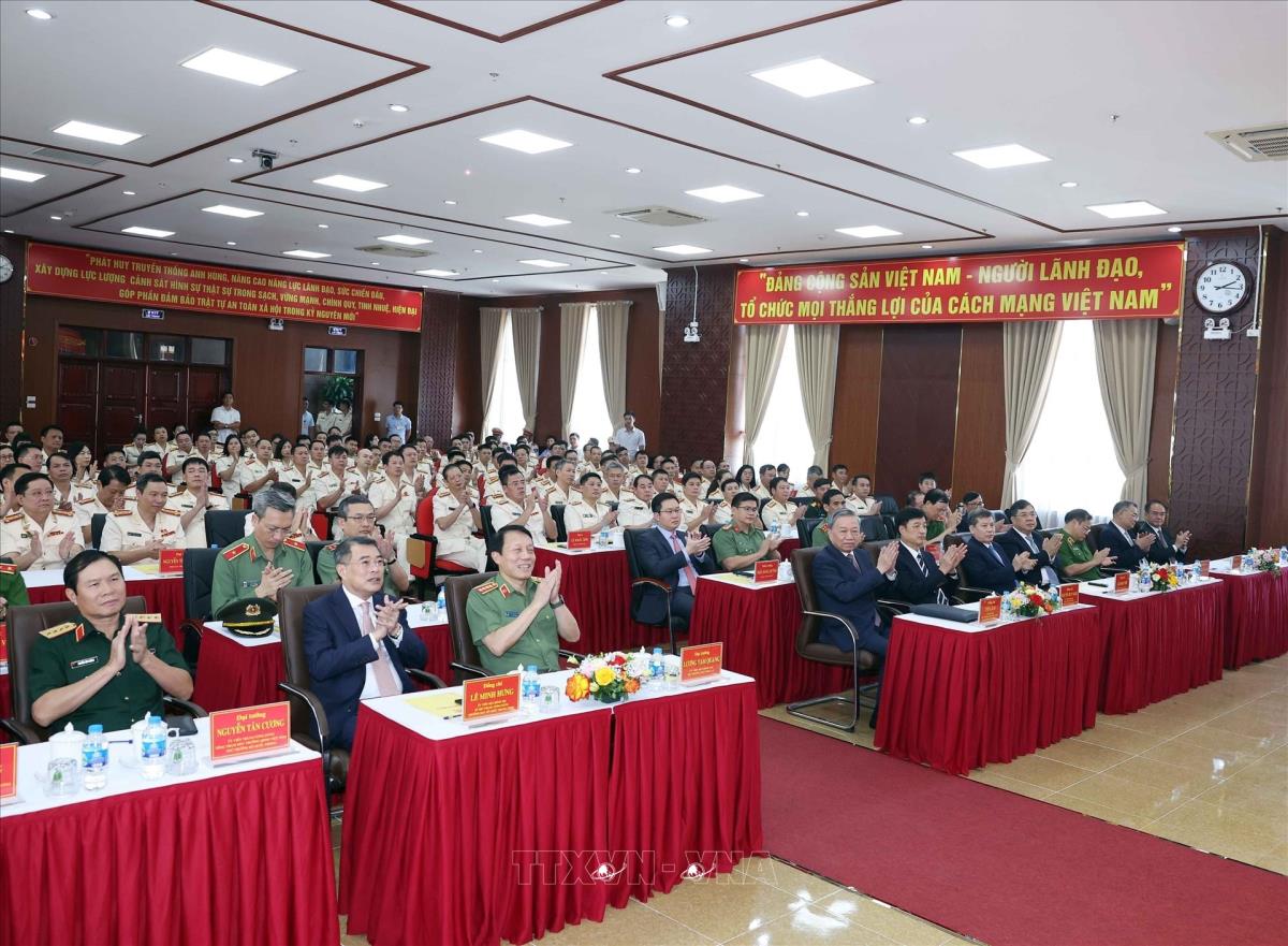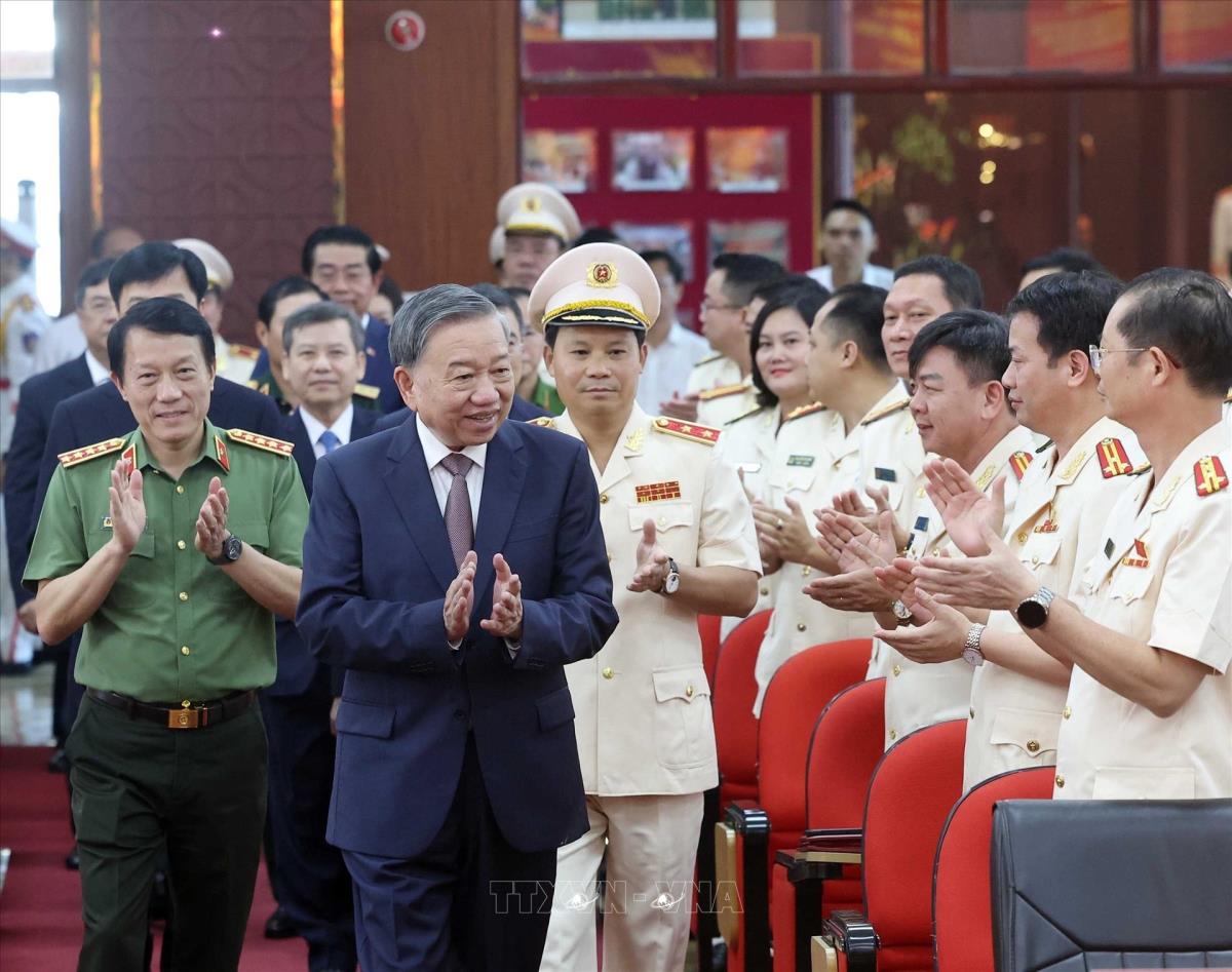 Hà Nội (TTXVN 8/8/2025) Chiều 8/8/2025, tại Hà Nội, Tổng Bí thư Tô Lâm đến thăm, làm việc với Cục Cảnh sát hình sự (Bộ Công an) nhân dịp kỷ niệm 80 năm Ngày truyền thống Công an nhân dân và 20 năm Ngày hội toàn dân bảo vệ an ninh Tổ quốc.