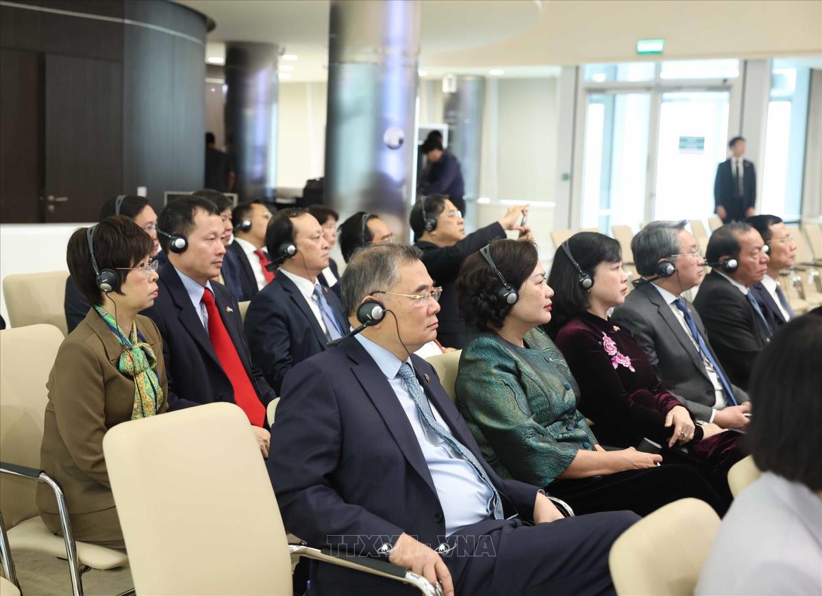 Đoàn đại biểu Việt Nam thăm Trung tâm Tài chính quốc tế Astana (7/5/2025). Ảnh: Thống Nhất - TTXVN