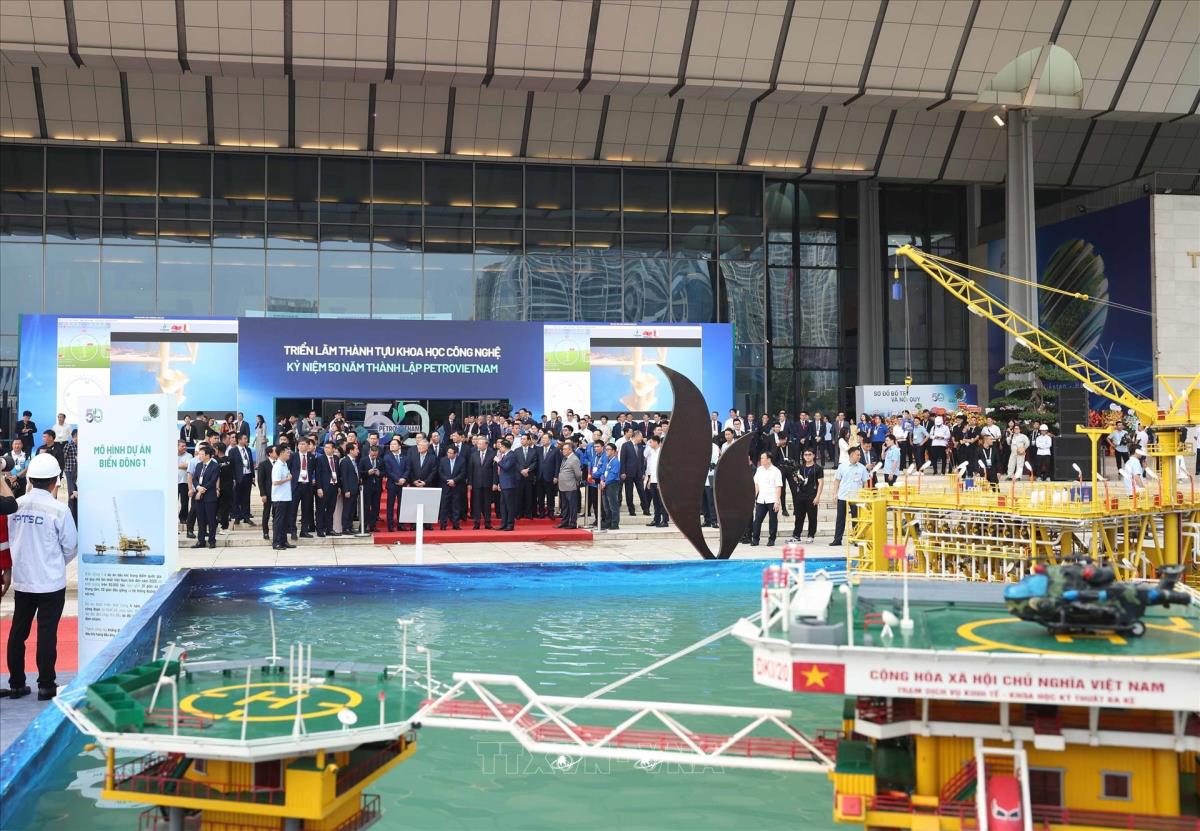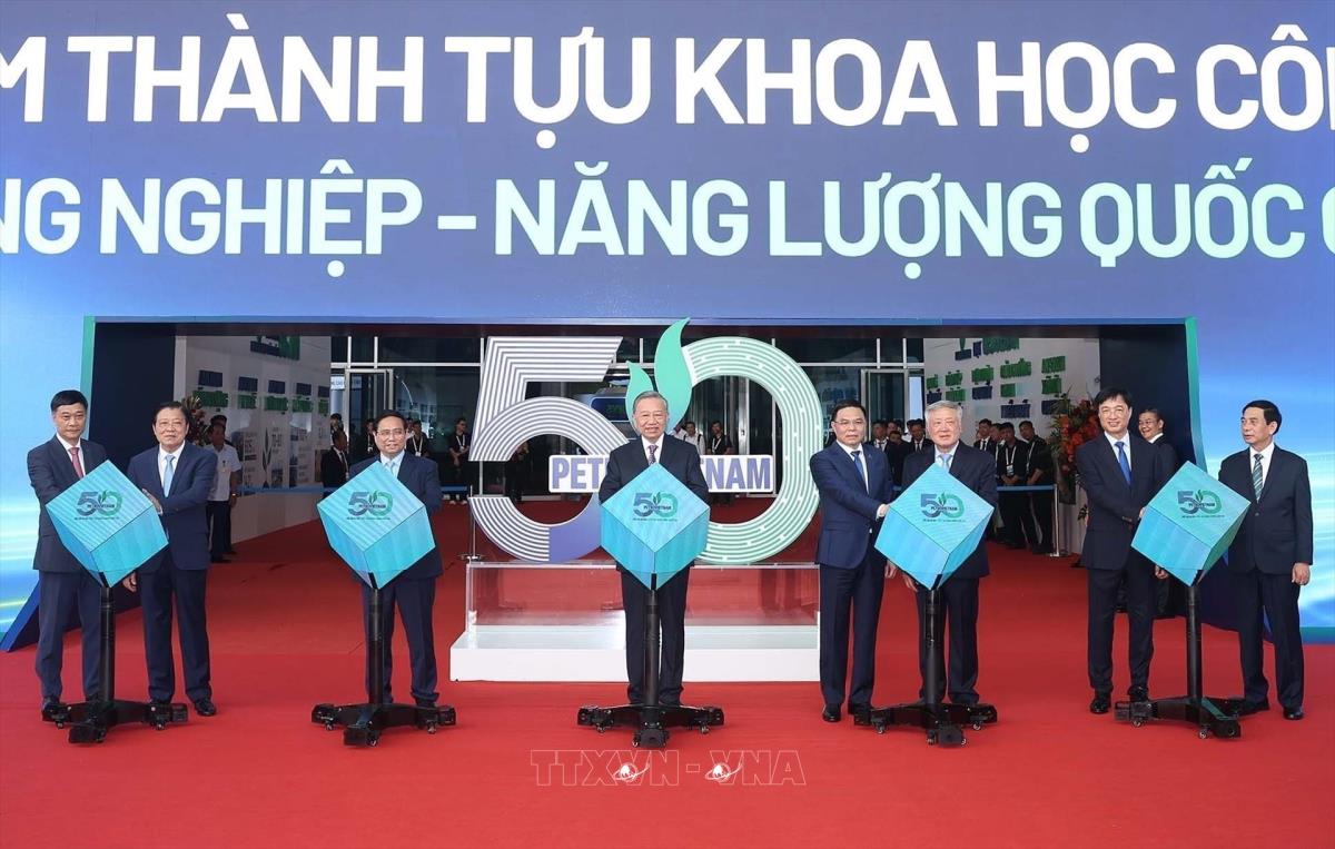Hà Nội (TTXVN 21/9/2025) Trong khuôn khổ Lễ đón nhận Huân chương Lao động Hạng Nhất và Kỷ niệm 50 năm ngày thành lập Tập đoàn Công nghiệp - Năng lượng quốc gia Việt Nam (Petrovietnam), Tổng Bí thư Tô Lâm, Thủ tướng Phạm Minh Chính và các đồng chí lãnh đạo Đảng, Nhà nước thực hiện nghi thức khai mạc triển lãm thành tựu khoa học công nghệ của Petrovietnam trong 50 năm qua. Triển lãm sẽ diễn ra trong 2 ngày 21 và 22/9; mở cửa rộng rãi, miễn phí từ 8h đến 21h ngày 22/9 để công chúng có thể tham quan.