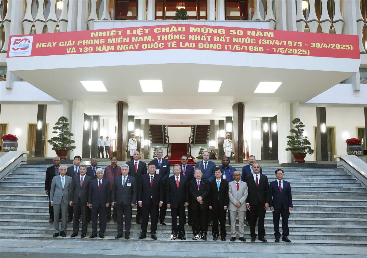 Tổng Bí thư Tô Lâm tiếp các Trưởng đoàn chính đảng các nước dự Lễ kỷ niệm 50 năm Ngày Giải phóng miền Nam, thống nhất đất nước. Ảnh: Thống Nhất - TTXVN