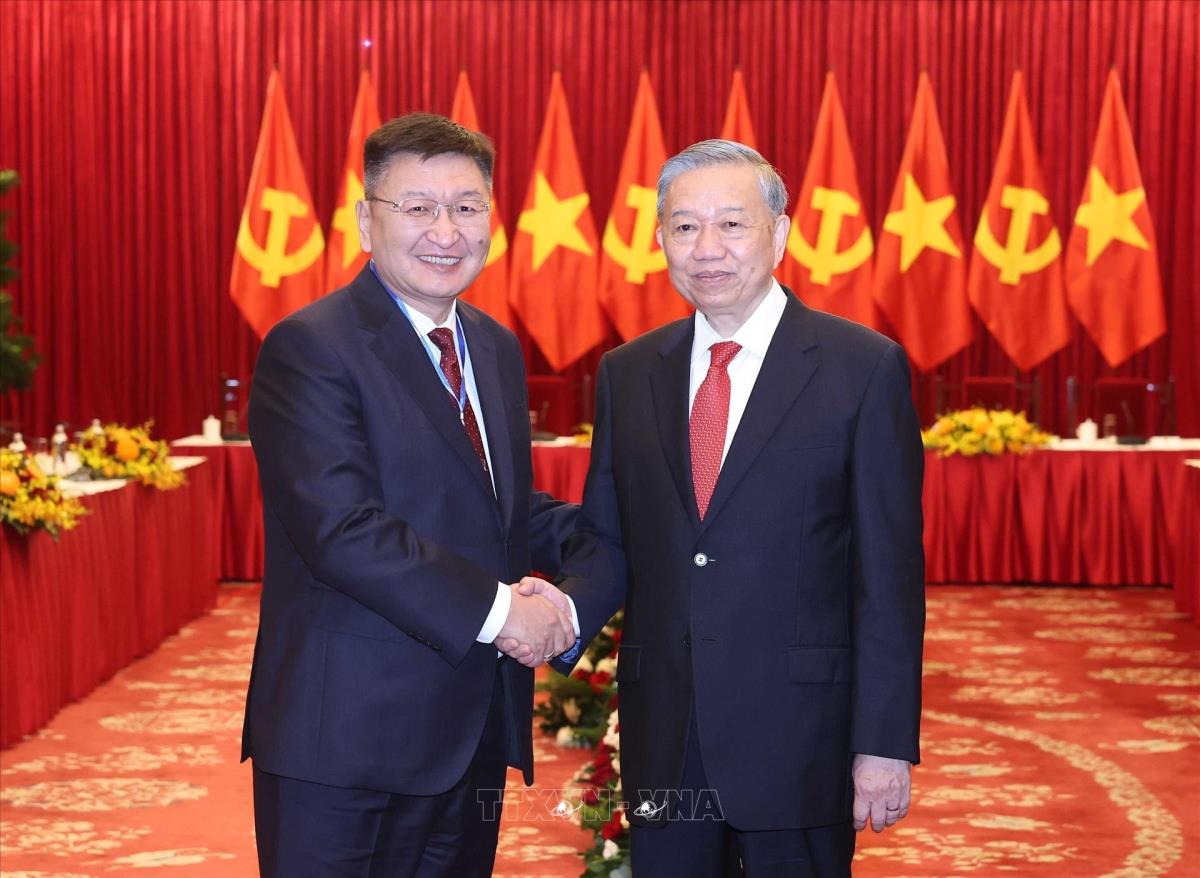 Tổng Bí thư Tô Lâm và Tổng Thư ký Đảng Nhân dân Mông Cổ Yangug Sodbaatar (29/4/2025). Ảnh: Thống Nhất - TTXVN