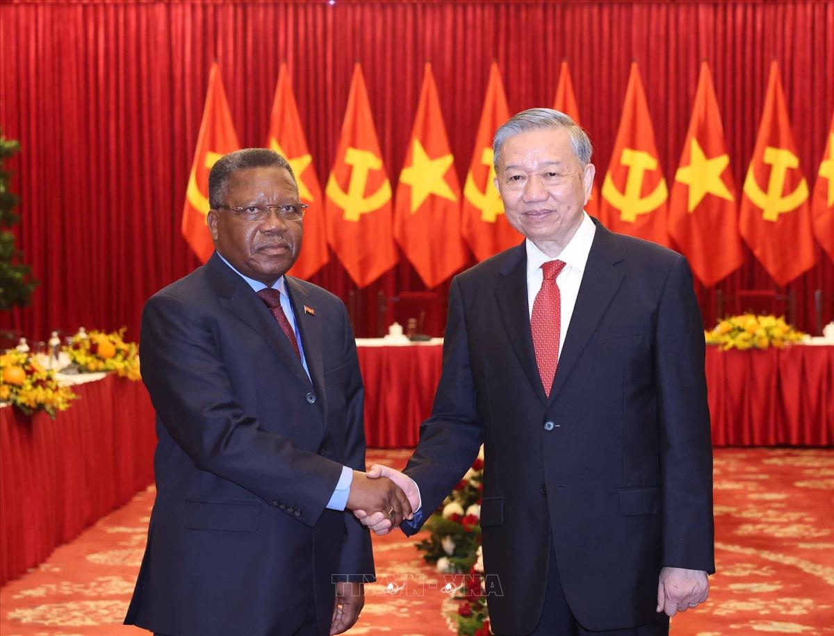 Tổng Bí thư Tô Lâm và Tổng Thư ký Đảng Mặt trận giải phóng Mozambique (Frelimo) Chakil Felizardo Passades Aboobacar (29/4/2025). Ảnh: Thống Nhất - TTXVN
