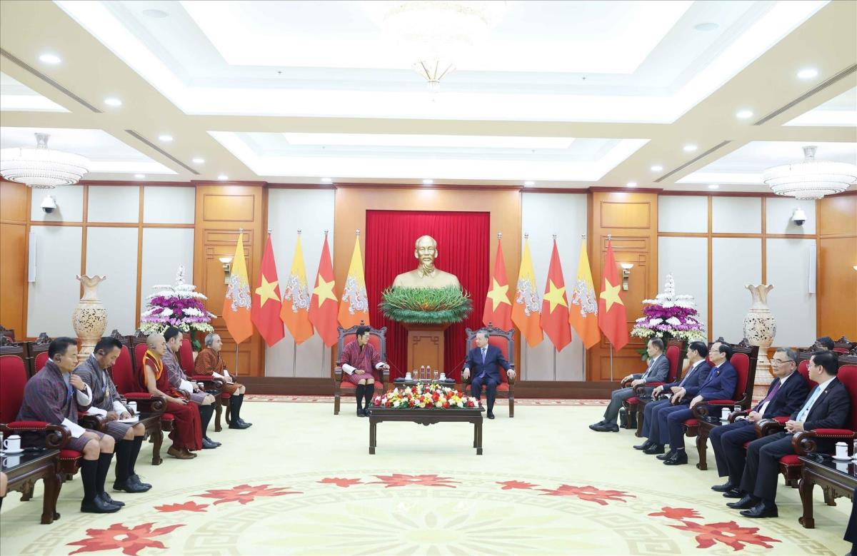 Tổng Bí thư Tô Lâm tiếp Quốc vương Bhutan Jigme Khesar Namgyel Wangchuck (19/8/2025) Ảnh: Thống Nhất - TTXVN