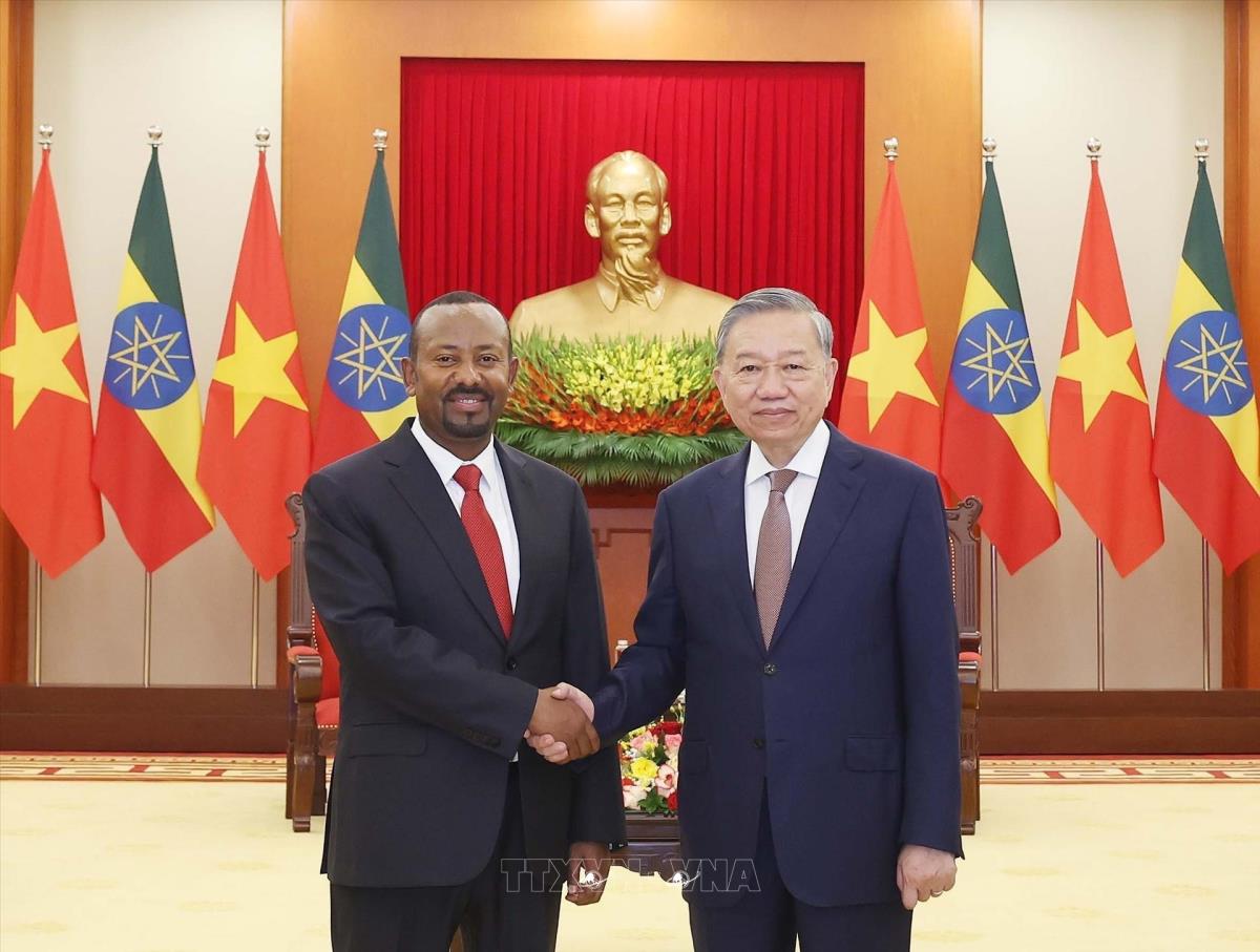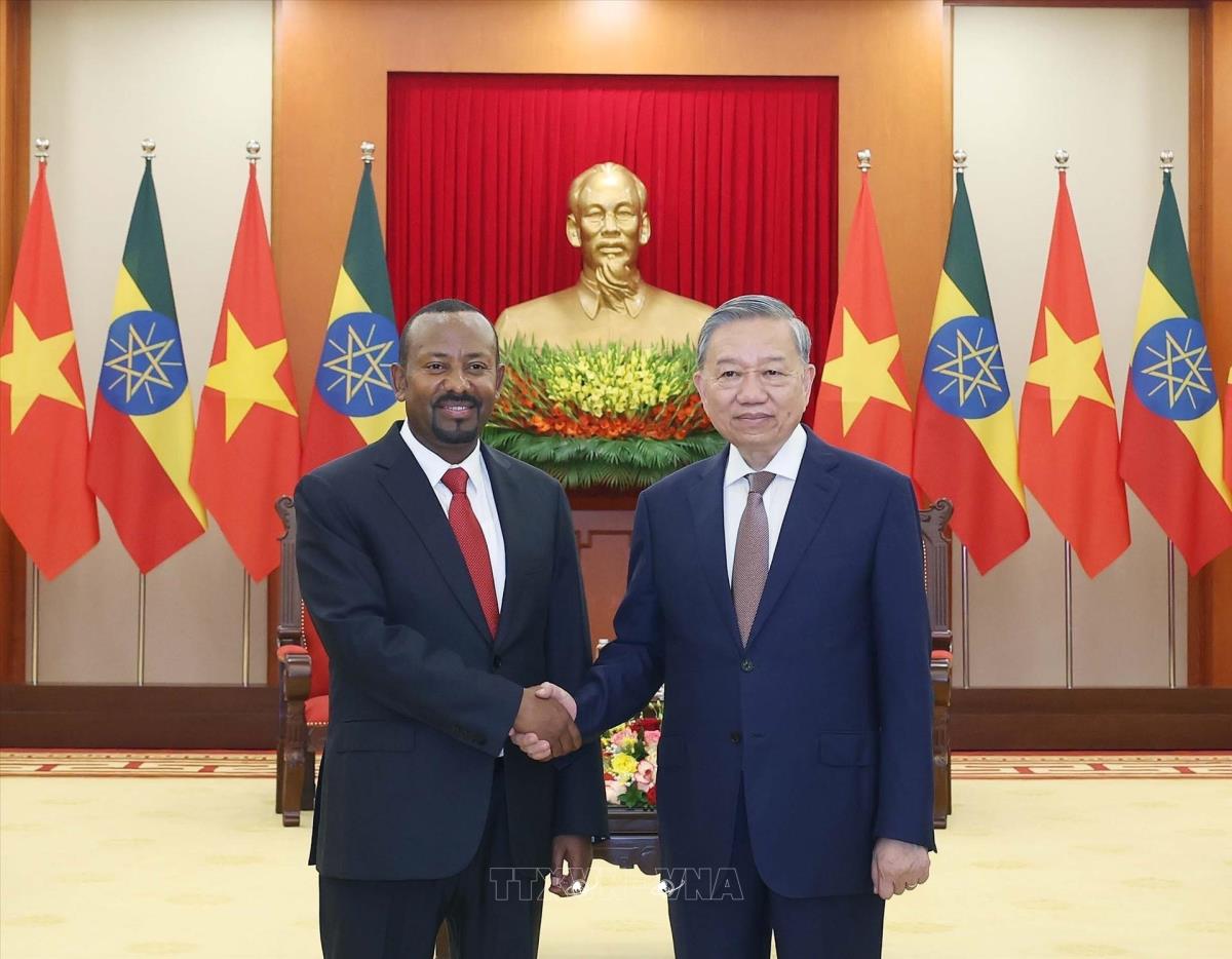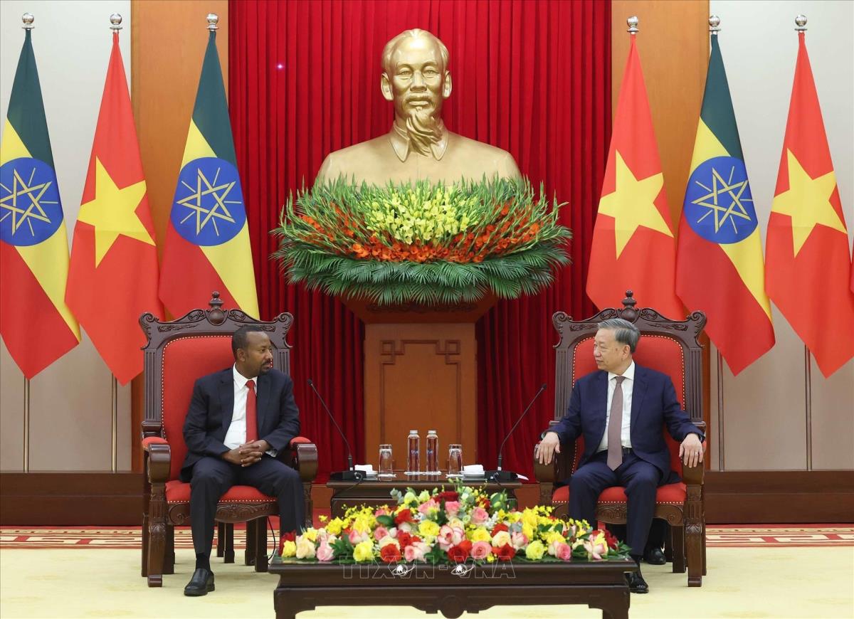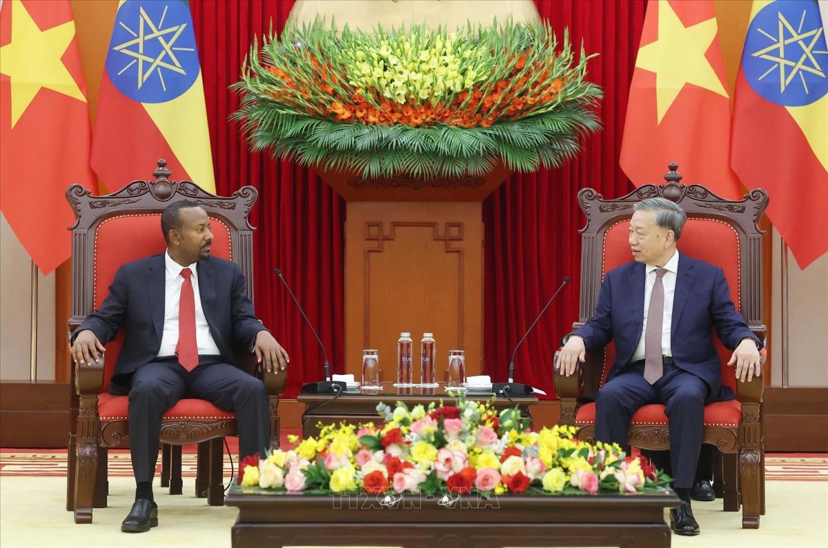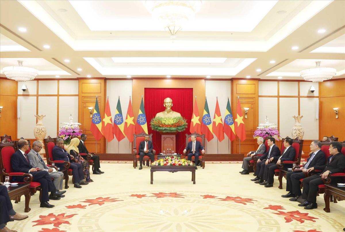 Tổng Bí thư Tô Lâm tiếp Thủ tướng Cộng hòa Dân chủ Liên bang Ethiopia, Chủ tịch Đảng Thịnh Vượng Abiy Ahmed Ali (15/4/2025). Ảnh: Thống Nhất – TTXVN