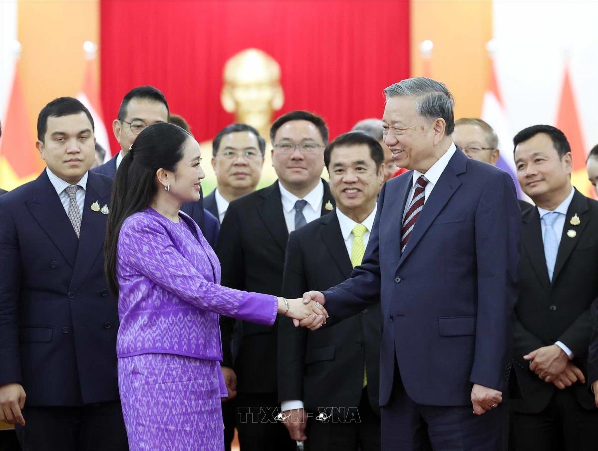 Tổng Bí thư Tô Lâm tiếp Thủ tướng Thái Lan Paetongtarn Shinawatra (16/5/2025). Ảnh: Thống Nhất – TTXVN