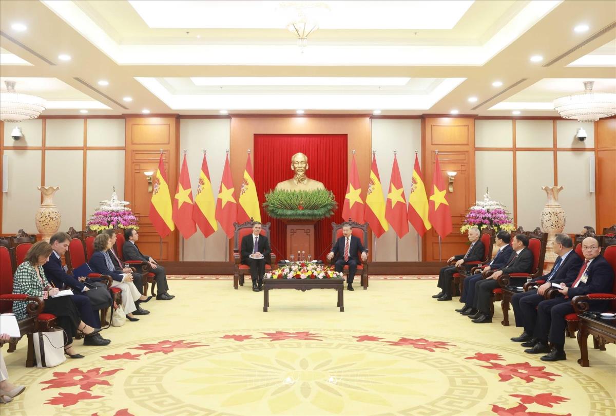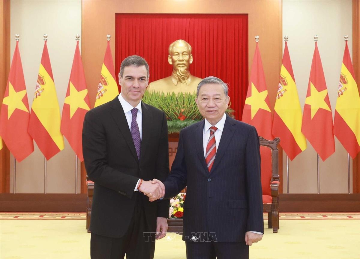 Hoan nghênh Thủ tướng Pedro Sánchez cùng Đoàn đại biểu cấp cao Tây Ban Nha thăm chính thức Việt Nam, Tổng Bí thư Tô Lâm khẳng định Việt Nam mong muốn làm sâu sắc hợp tác mọi mặt với Tây Ban Nha, một thành viên quan trọng và cửa ngõ của Liên minh châu Âu; nhấn mạnh ý nghĩa chuyến thăm Việt Nam đầu tiên của người đứng đầu Chính phủ Tây Ban Nha kể từ khi hai nước thiết lập quan hệ ngoại giao và tin tưởng chuyến thăm sẽ tạo xung lực đưa quan hệ “Đối tác chiến lược hướng tới tương lai” Việt Nam - Tây Ban Nha lên tầm cao mới, vì thịnh vượng và lợi ích của nhân dân hai nước, vì hòa bình, hợp tác và phát triển tại khu vực và thế giới.