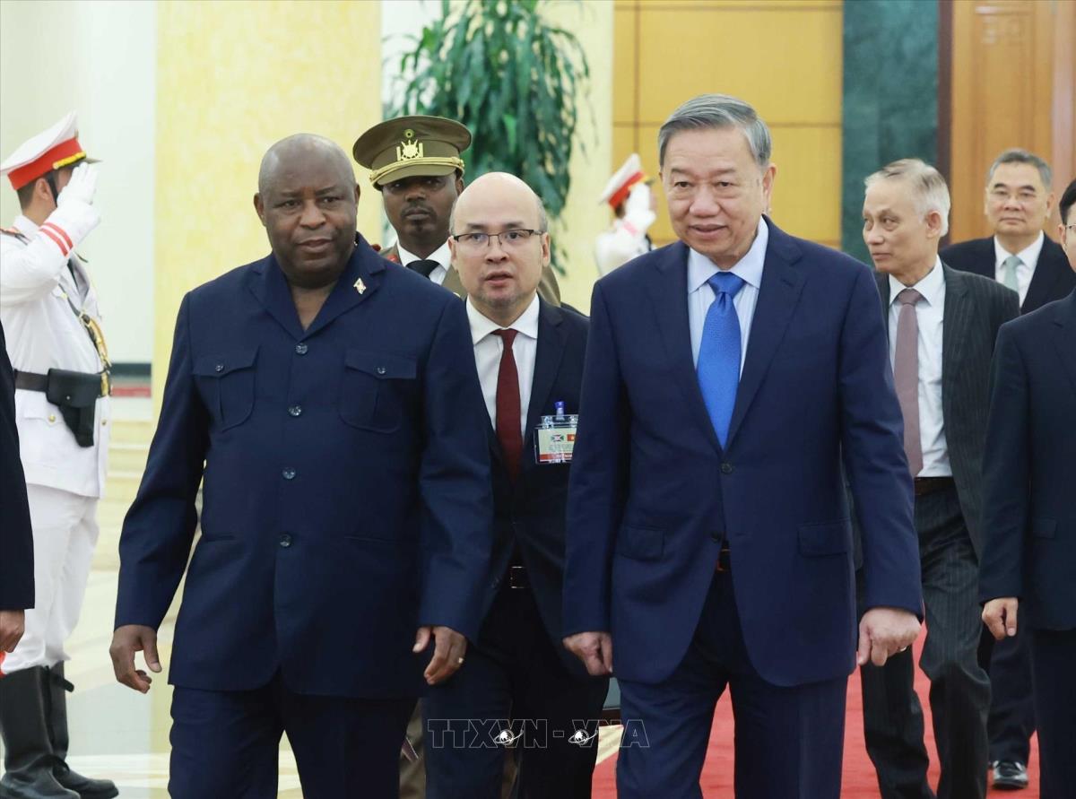 Tổng Bí thư Tô Lâm tiếp Tổng thống Cộng hòa Burundi Évariste Ndayishimiye (4/4/2025). Ảnh: Thống Nhất – TTXVN