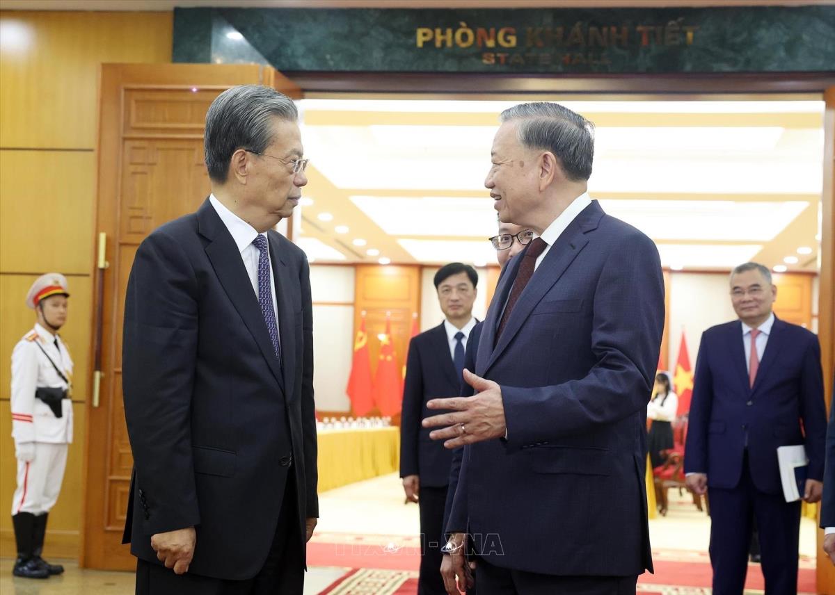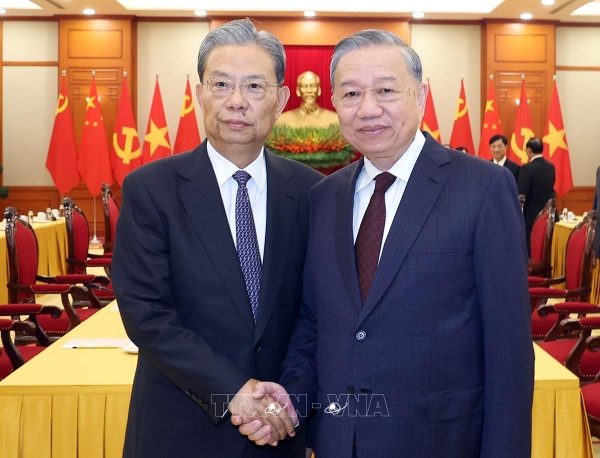Hà Nội (TTXVN 31/8/2025) Chiều 31/8/2025, tại Trụ sở Trung ương Đảng, Tổng Bí thư Tô Lâm tiếp Ủy viên trưởng Nhân đại toàn quốc Trung Quốc Triệu Lạc Tế, nhân chuyến thăm chính thức Việt Nam; dự Lễ kỷ niệm 80 năm Cách mạng tháng Tám và Quốc khánh Việt Nam 2/9; và đồng chủ trì Phiên họp lần thứ nhất Ủy ban hợp tác giữa Quốc hội Việt Nam và Nhân đại toàn quốc Trung Quốc từ ngày 31/8 đến ngày 2/9/2025.