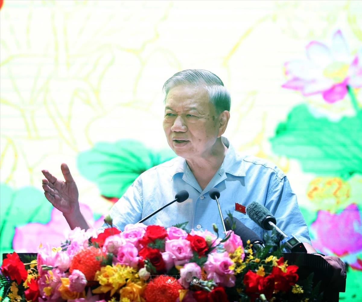 Tổng Bí thư Tô Lâm phát biểu tại cuộc tiếp xúc cử tri 9 xã (Hà Nội) trước Kỳ họp thứ 10, Quốc hội khóa XV (30/9/2025). Ảnh: Thống Nhất - TTXVN