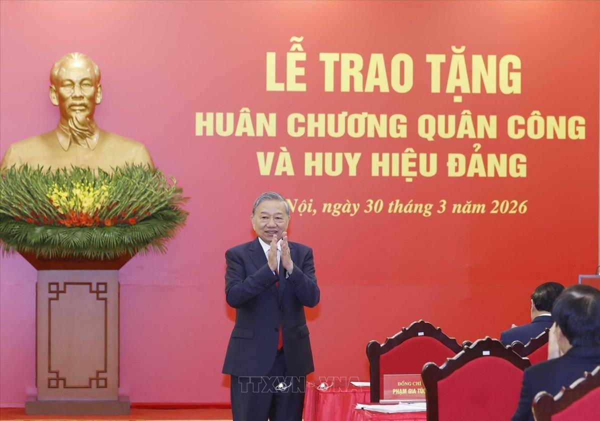 Chiều 30/3, tại Trụ sở Trung ương Đảng, Tổng Bí thư Tô Lâm đã chủ trì Lễ trao tặng Huân chương Quân công và Huy hiệu Đảng cho các đồng chí lãnh đạo, nguyên lãnh đạo Đảng, Nhà nước.