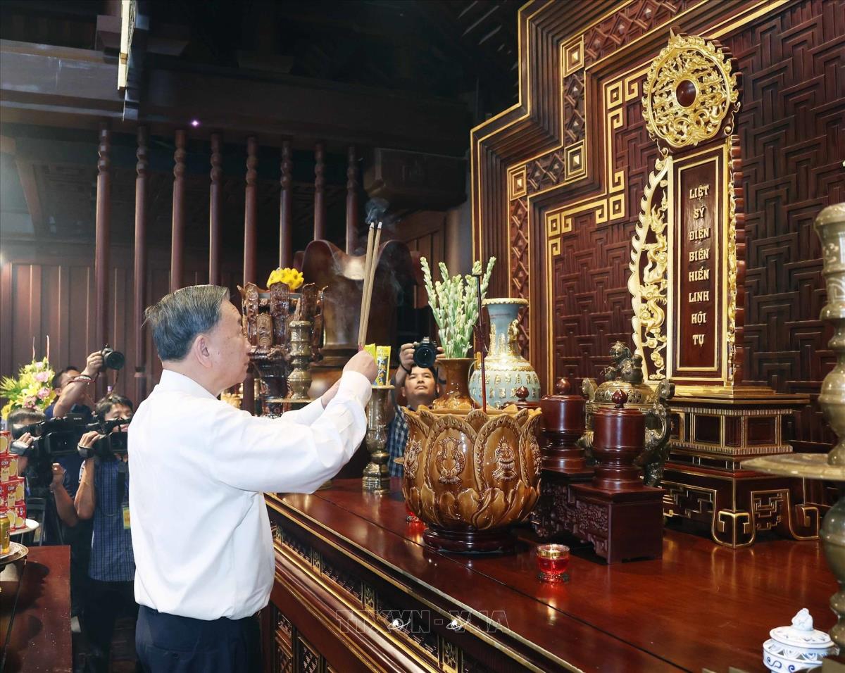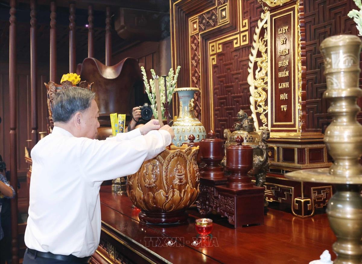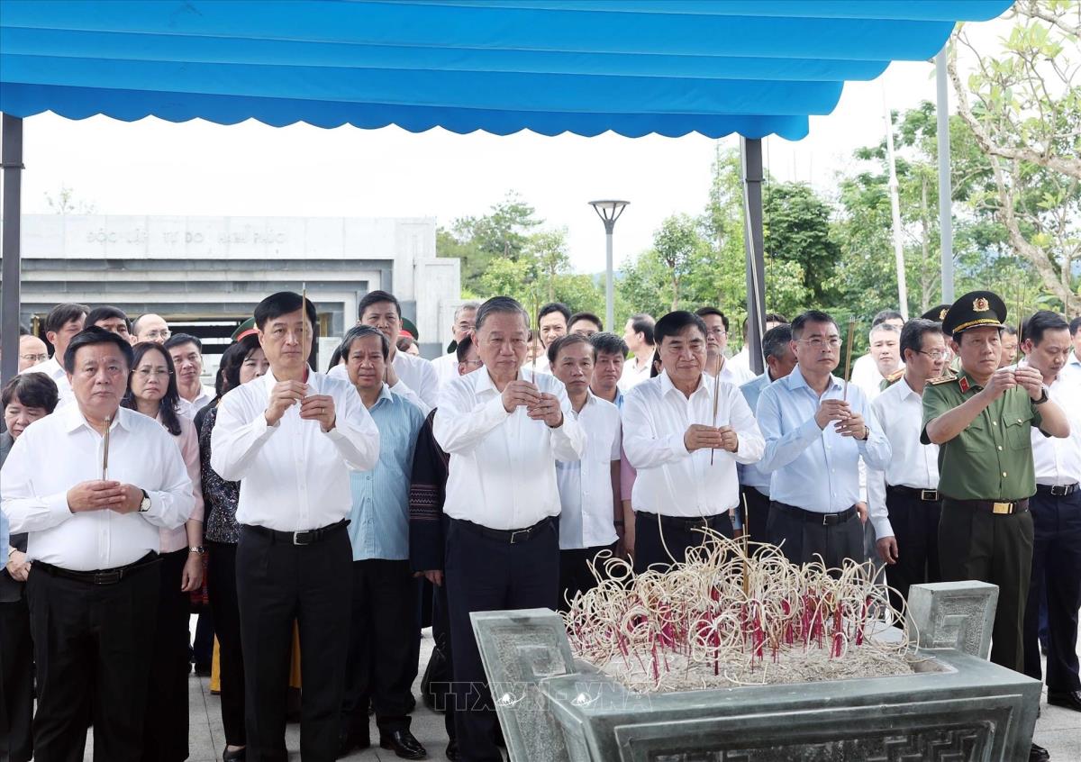 Tổng Bí thư Tô Lâm dâng hương tưởng niệm tại Đền thờ liệt sĩ ở Chiến trường Điện Biên Phủ (27/7/2025). Ảnh: Thống Nhất – TTXVN