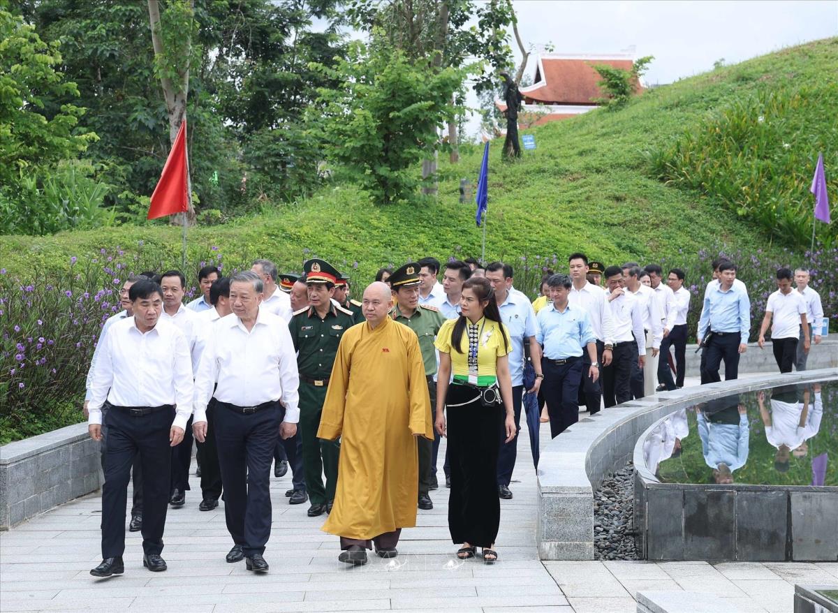 Hà Nội (TTXVN 27/7/2025) Kỷ niệm 78 năm Ngày Thương binh - Liệt sĩ (27/7/1947 - 27/7/2025), sáng 27/7/2025, tại tỉnh Điện Biên, Tổng Bí thư Tô Lâm cùng đoàn công tác Trung ương đến dâng hoa, dâng hương tưởng niệm Anh hùng liệt sĩ tại Đền thờ liệt sĩ ở Chiến trường Điện Biên Phủ.