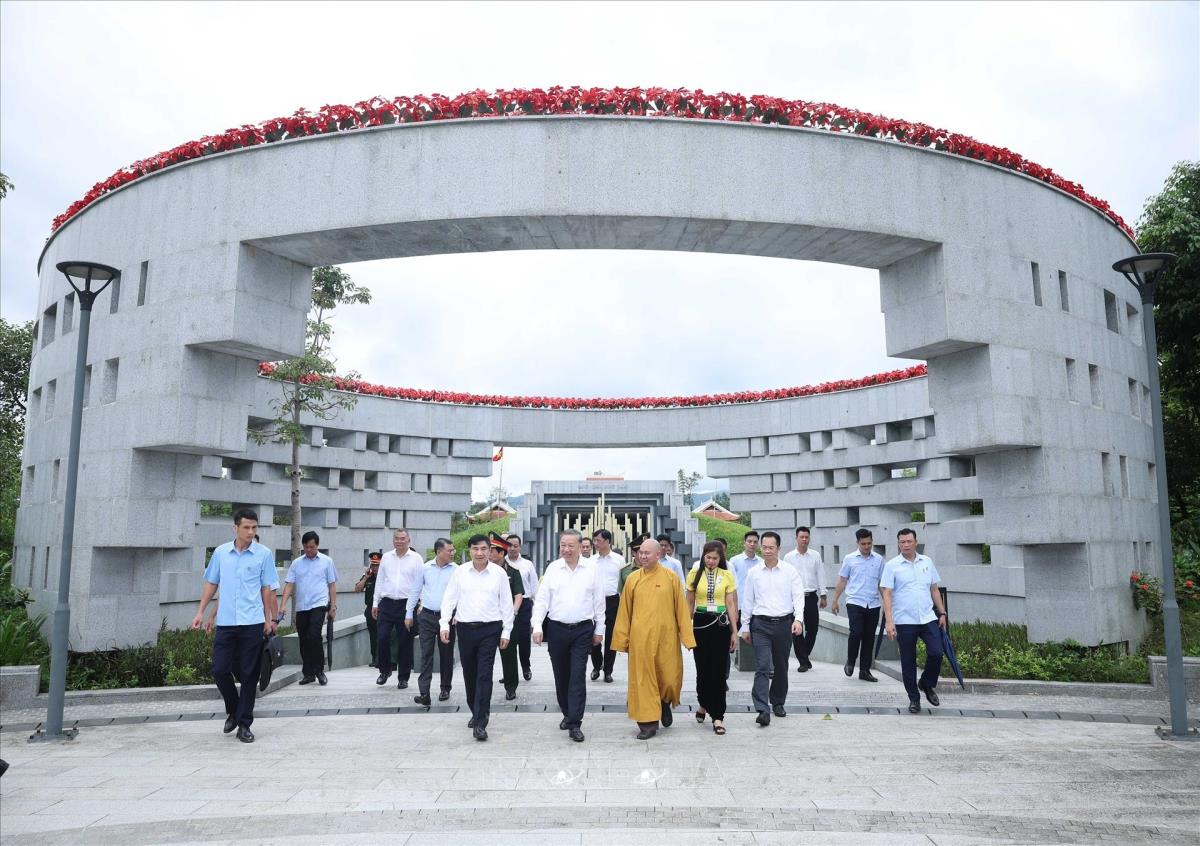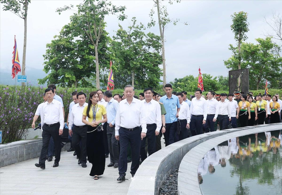 Tổng Bí Thư Tô Lâm cùng đoàn công tác Trung ương đến dâng hoa, dâng hương tưởng niệm tại Đền thờ liệt sĩ ở Chiến trường Điện Biên Phủ (27/7/2025). Ảnh: Thống Nhất – TTXVN