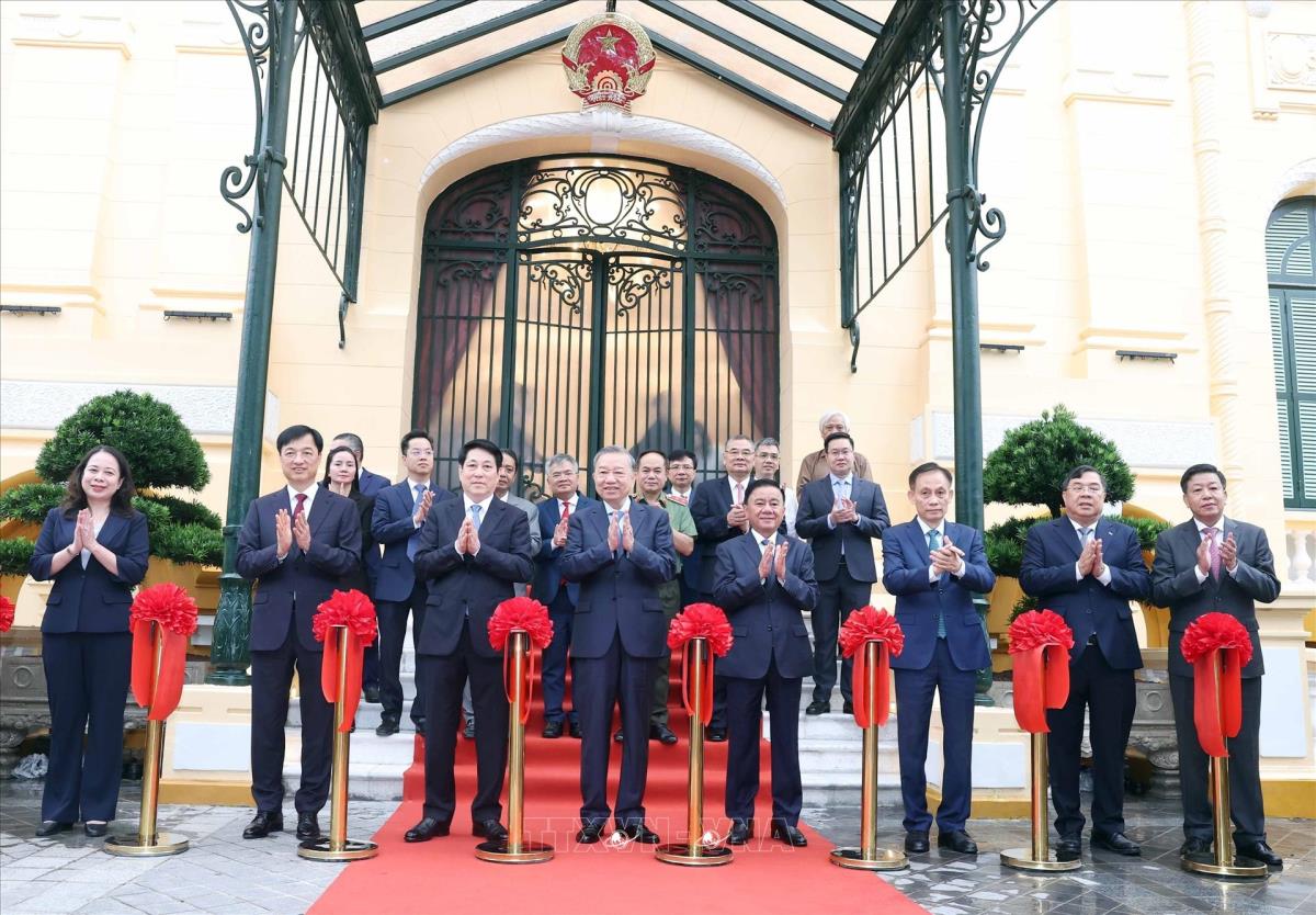 Hà Nội (TTXVN 19/8/2025) Sáng 19/8/2025, Tổng Bí thư Tô Lâm và Chủ tịch nước Lương Cường dự Lễ bàn giao Dự án cải tạo, sửa chữa, nâng cấp, xây mới Trụ sở làm việc Cơ quan Chủ tịch nước (trước là Nhà khách Chính phủ, còn được gọi là “Tòa nhà Bắc Bộ Phủ” – nơi làm việc của Toàn quyền Đông Dương thời Pháp thuộc, đồng thời là Di tích lịch sử cách mạng của Thủ đô), tại số 2 phố Lê Thạch, Hà Nội.
