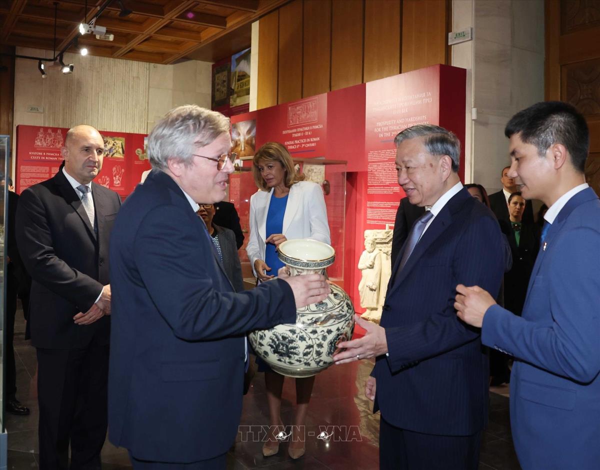Tổng Bí thư Tô Lâm tặng bình gồm Chu Đậu cho Bảo tàng lịch sử Quốc gia Bulgaria (23/10/2025). Ảnh: Thống Nhất – TTXVN
