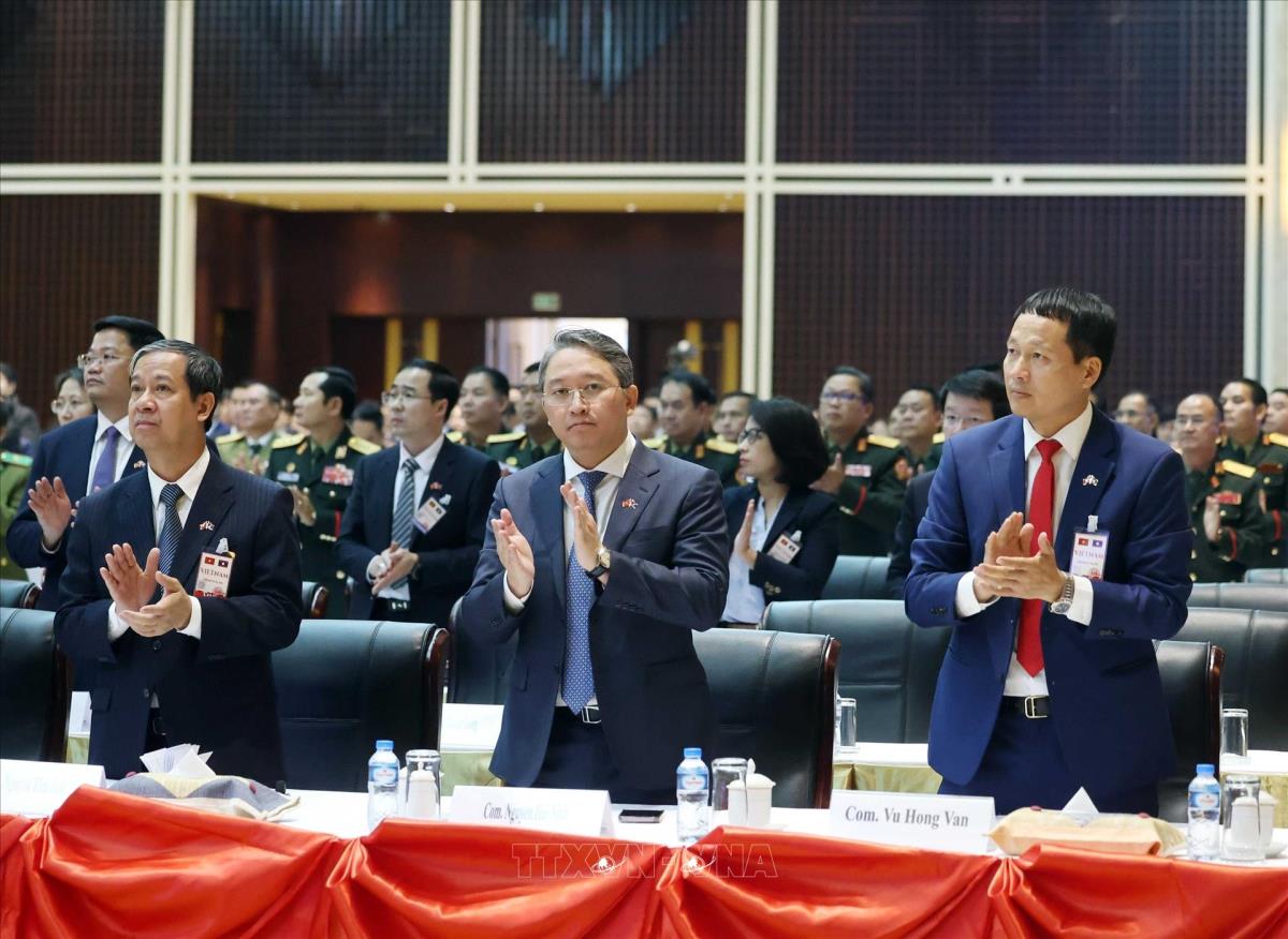 [Photo] Tổng Bí thư Tô Lâm và Tổng Bí thư, Chủ tịch nước Lào chủ trì Hội nghị thông báo kết quả Đại hội XIV của Đảng Cộng sản Việt Nam