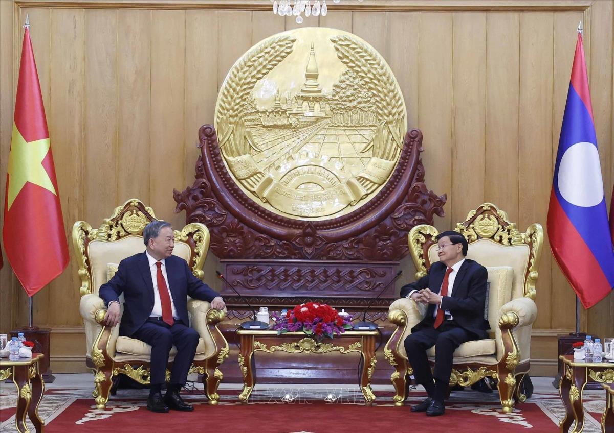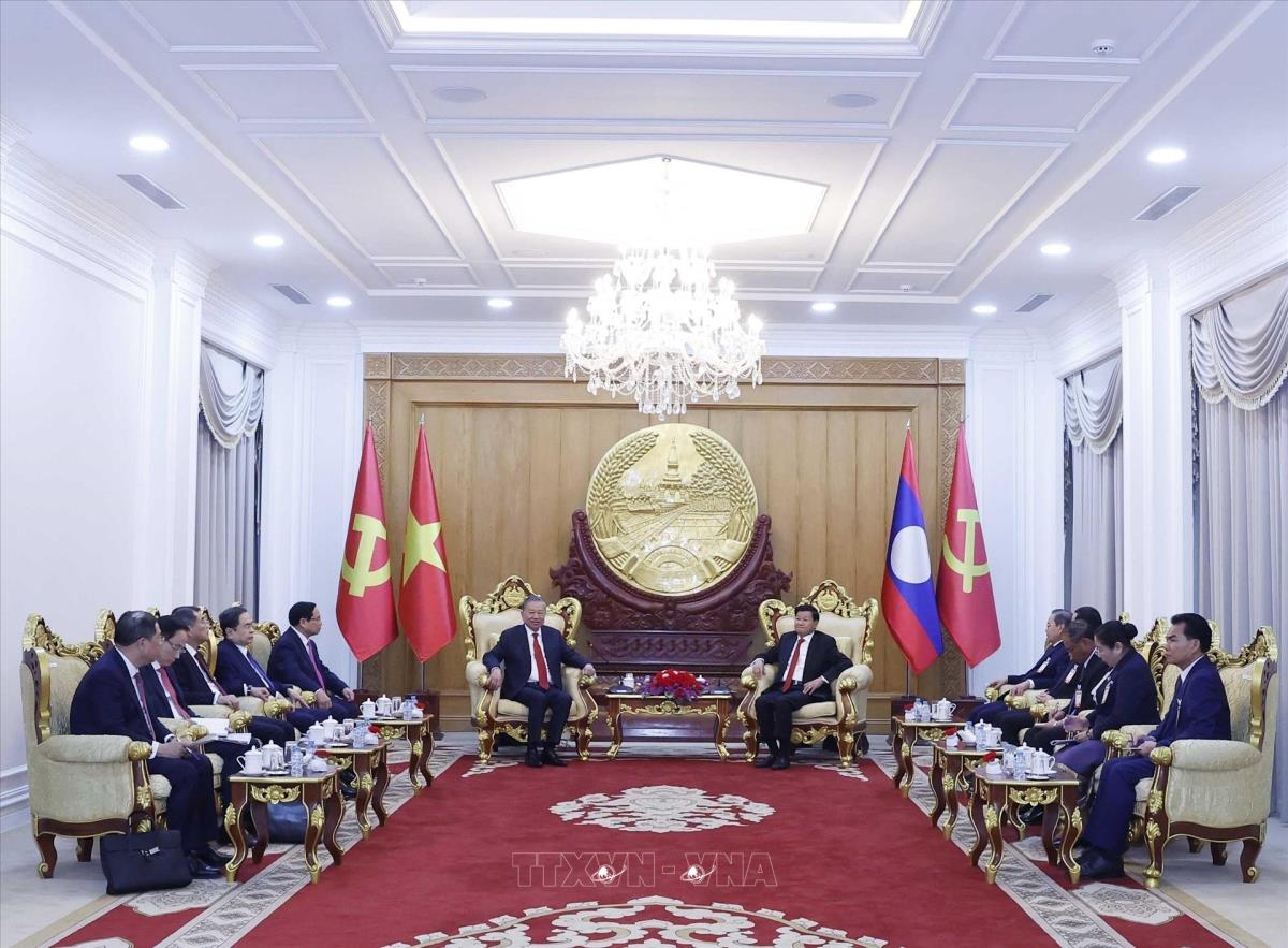 [Photo] Tổng Bí thư Tô Lâm và Tổng Bí thư, Chủ tịch nước Lào gặp hẹp