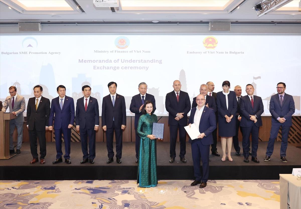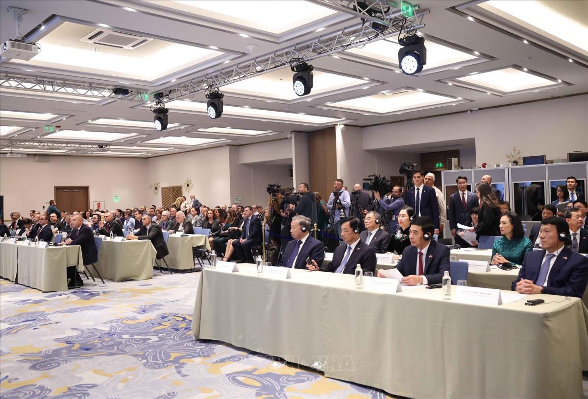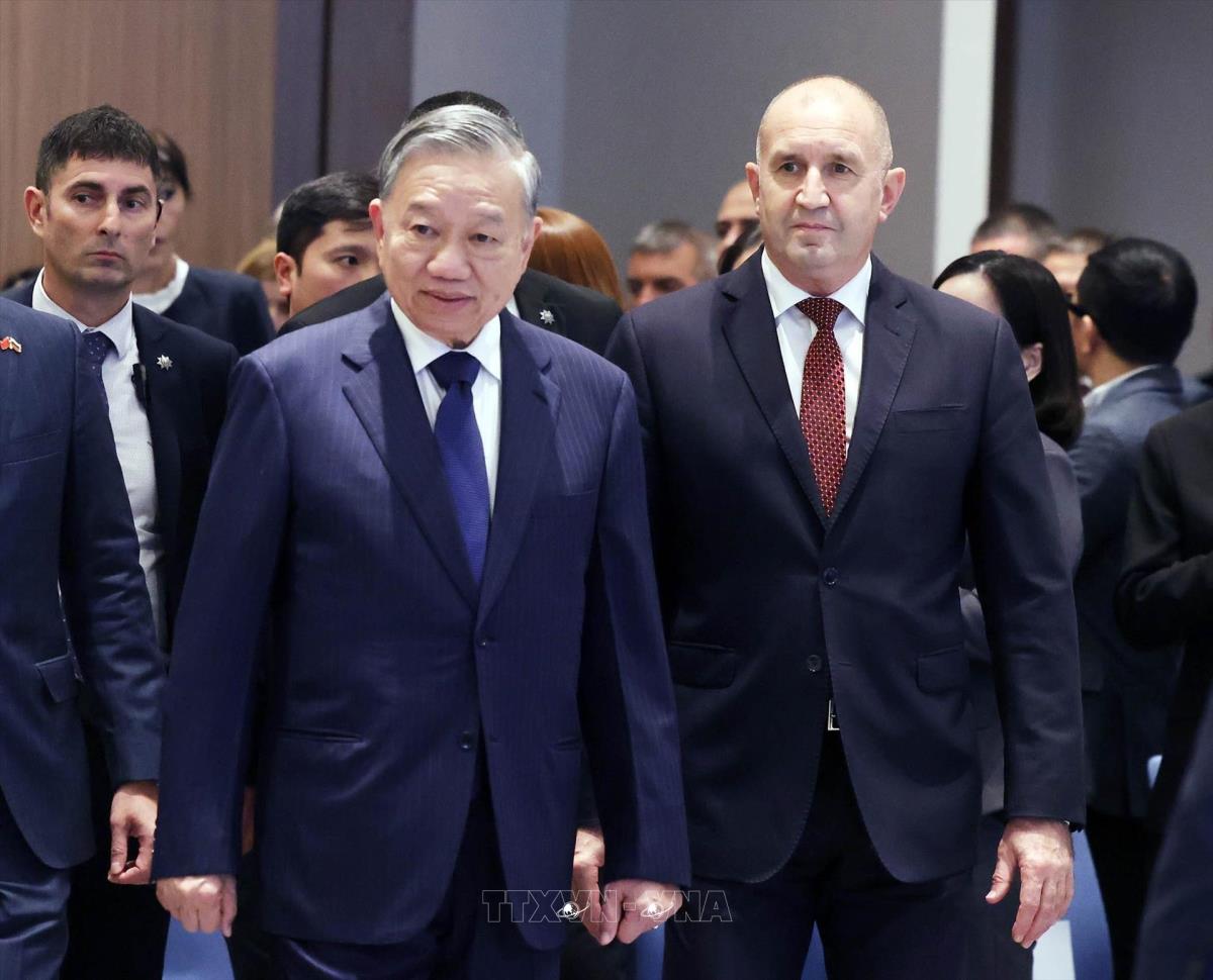 Hà Nội (TTXVN 23/10/2025) Chiều 23/10/2025 (theo giờ địa phương), tại Thủ đô Sofia, Tổng Bí thư Tô Lâm và Tổng thống Rumen Radev dự Diễn đàn Doanh nghiệp Việt Nam- Bulgaria.