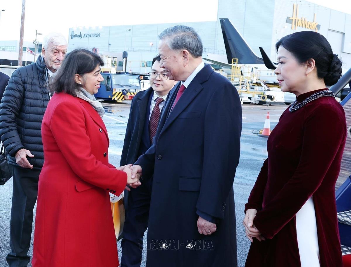 Hà Nội (TTXVN 28/10/2025) Sáng 28/10/2025 (theo giờ địa phương), Tổng Bí thư Tô Lâm và Phu nhân cùng Đoàn đại biểu cấp cao Việt Nam đến Thủ đô London, bắt đầu chuyến thăm chính thức Liên hiệp Vương quốc Anh và Bắc Ireland từ ngày 28 - 30/10/2025.