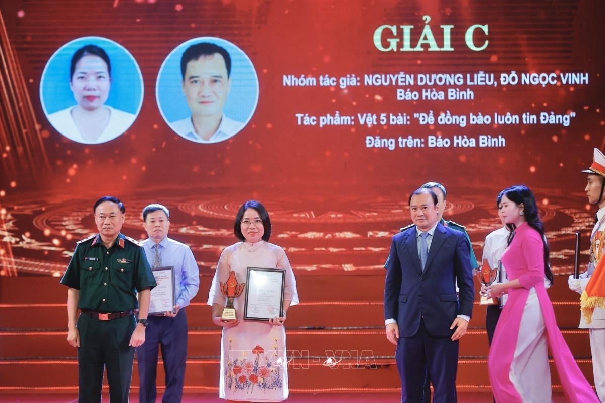 Ban tổ chức trao giải C cho các tác giả đoạt giải (15/5/2025). Ảnh: Minh Quyết - TTXVN