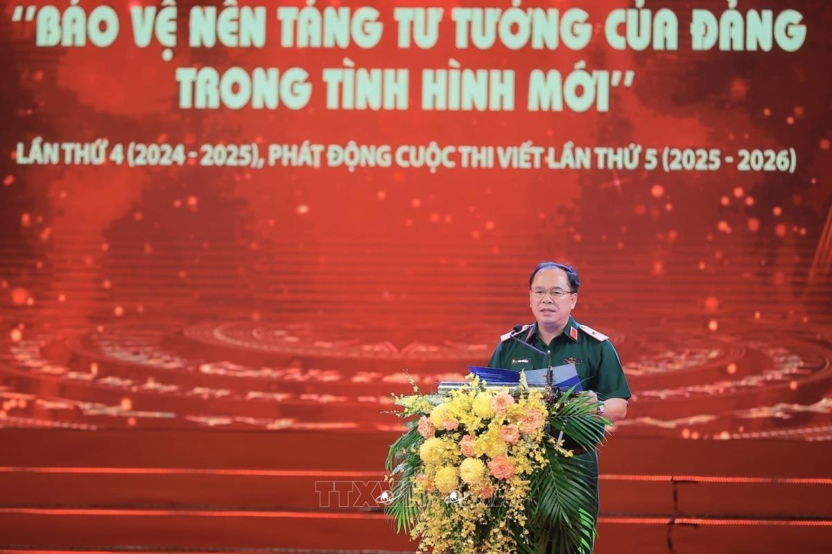 Hà Nội (TTXVN 15/5/2025) Nhân dịp kỷ niệm 135 năm Ngày sinh Chủ tịch Hồ Chí Minh (19/5/1890 - 19/5/2025), tối 15/5/2025, tại Hà Nội, Báo Quân đội nhân dân phối hợp với Hội Nhà báo Việt Nam tổ chức Tổng kết, trao giải Cuộc thi viết “Bảo vệ nền tảng tư tưởng của Đảng trong tình hình mới” lần thứ 4 (2024 - 2025) và phát động Cuộc thi viết lần thứ 5 (2025 - 2026). Nguyên Tổng Bí thư Nông Đức Mạnh; đồng chí Nguyễn Trọng Nghĩa, Ủy viên Bộ Chính trị, Bí thư Trung ương Đảng, Trưởng Ban Tuyên giáo và Dân vận Trung ương đến dự.
