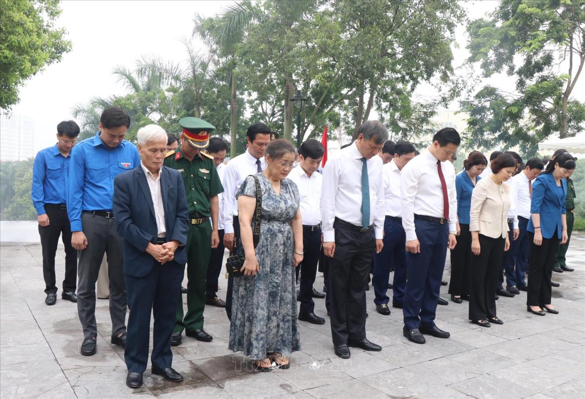 Các đại biểu thành kính tưởng niệm trước tượng đài đồng chí Hoàng Quốc Việt (28/5/2025). Ảnh: Thanh Thương- TTXVN