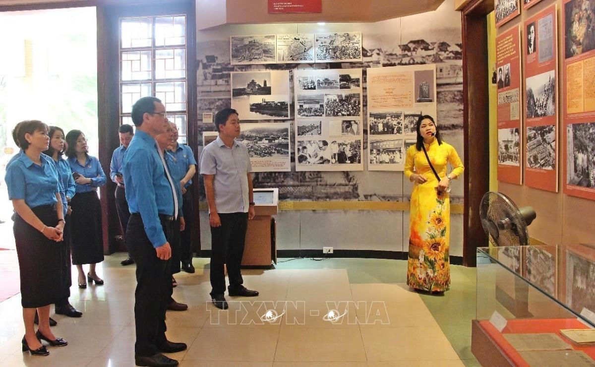 Các đại biểu tham quan nhà trưng bày lưu niệm đồng chí Hoàng Quốc Việt (28/5/2025). Ảnh: Thanh Thương- TTXVN