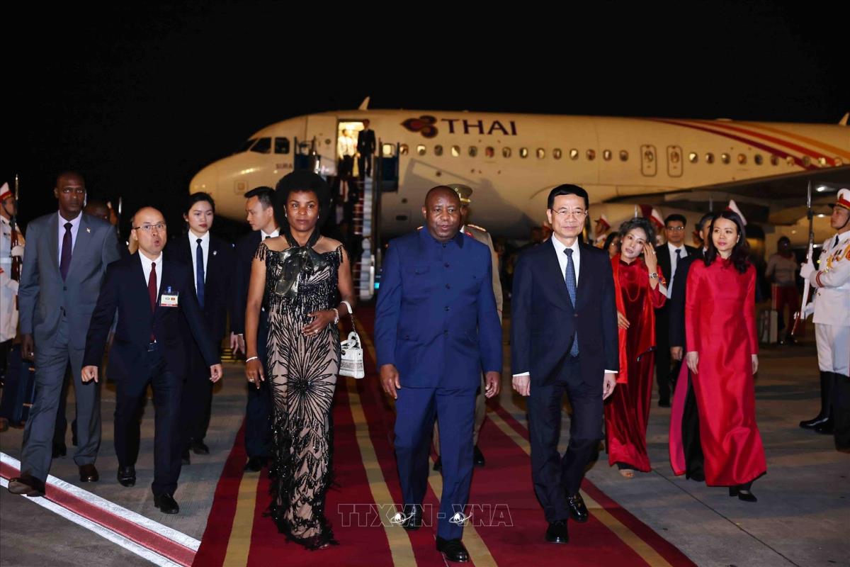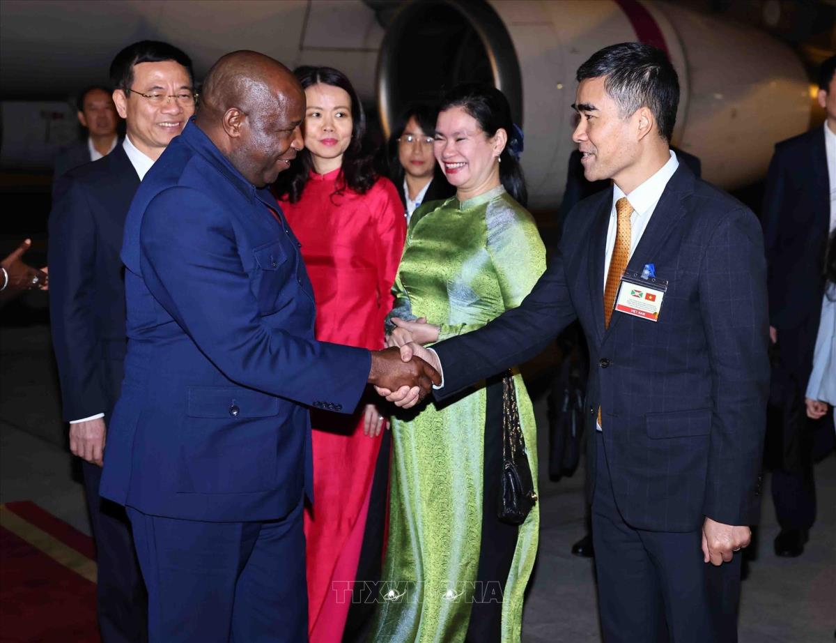 Hà Nội (TTXVN 3/4/2025) Tối 3/4/2025, Tổng thống nước Cộng hòa Burundi Évariste Ndayishimiye và Phu nhân đến Hà Nội, bắt đầu chuyến thăm cấp Nhà nước tới Việt Nam theo lời mời của Chủ tịch nước Lương Cường và Phu nhân.