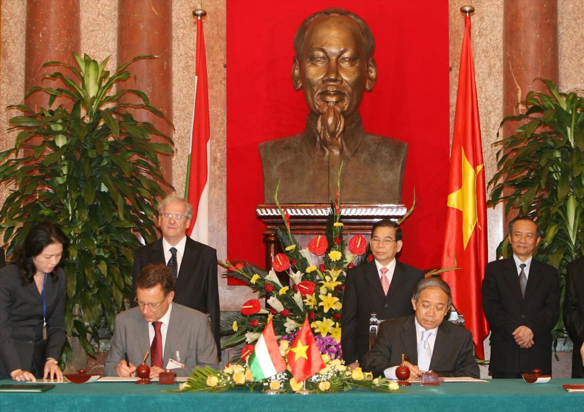 * Cũng trong sáng 16/5, Chủ tịch nước Nguyễn Minh Triết và Tổng thống Sôi-ôm La-xlô đã chứng kiến lễ ký các văn kiện hợp tác, đó là: Hiệp định thiết lập Chương trình khung hợp tác tài chính giữa Chính phủ Việt Nam và Chính phủ Hung-ga-ri; Thỏa thuận hợp tác y tế giữa Bộ Y tế Việt Nam và Bộ Y tế Hung-ga-ri; Kế hoạch hợp tác giáo dục giai đoạn 2008-2011 giữa Bộ Giáo dục - Đào tạo Việt Nam và Bộ Giáo dục - Văn hóa Hung-ga-ri; và Chương trình hợp tác du lịch giai đoạn 2008-2010 giữa Bộ Văn hóa, Thể thao và Du lịch Việt Nam và Bộ Chính phủ địa phương và Phát triển vùng Hung-ga-ri.