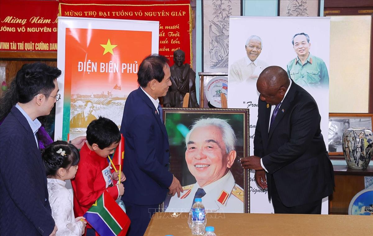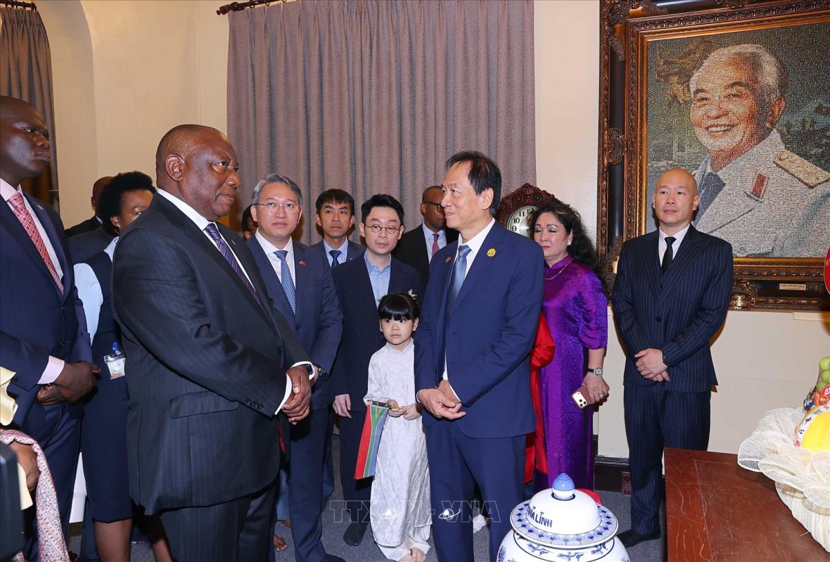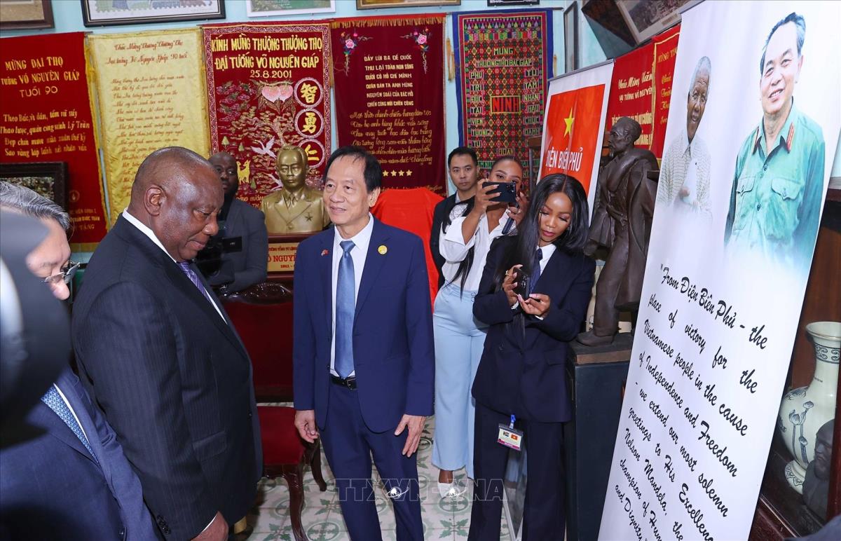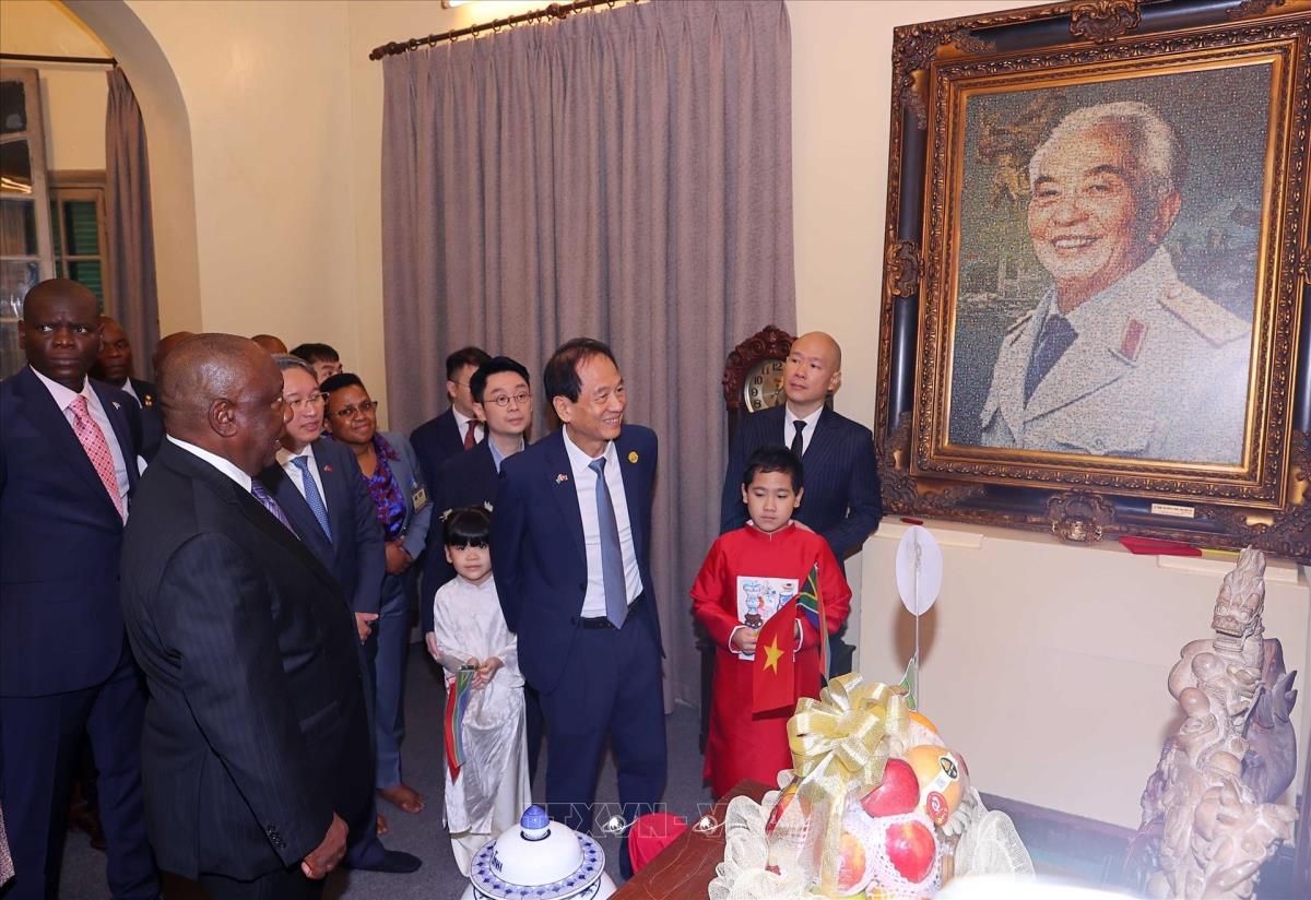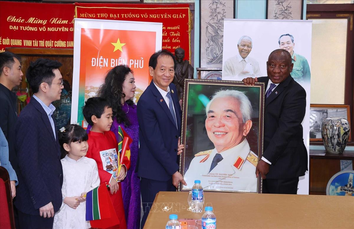 Tổng thống Nam Phi Matamela Cyril Ramaphosa thăm gia đình Đại tướng Võ Nguyên Giáp (24/10/2025). Ảnh: Văn Điệp – TTXVN