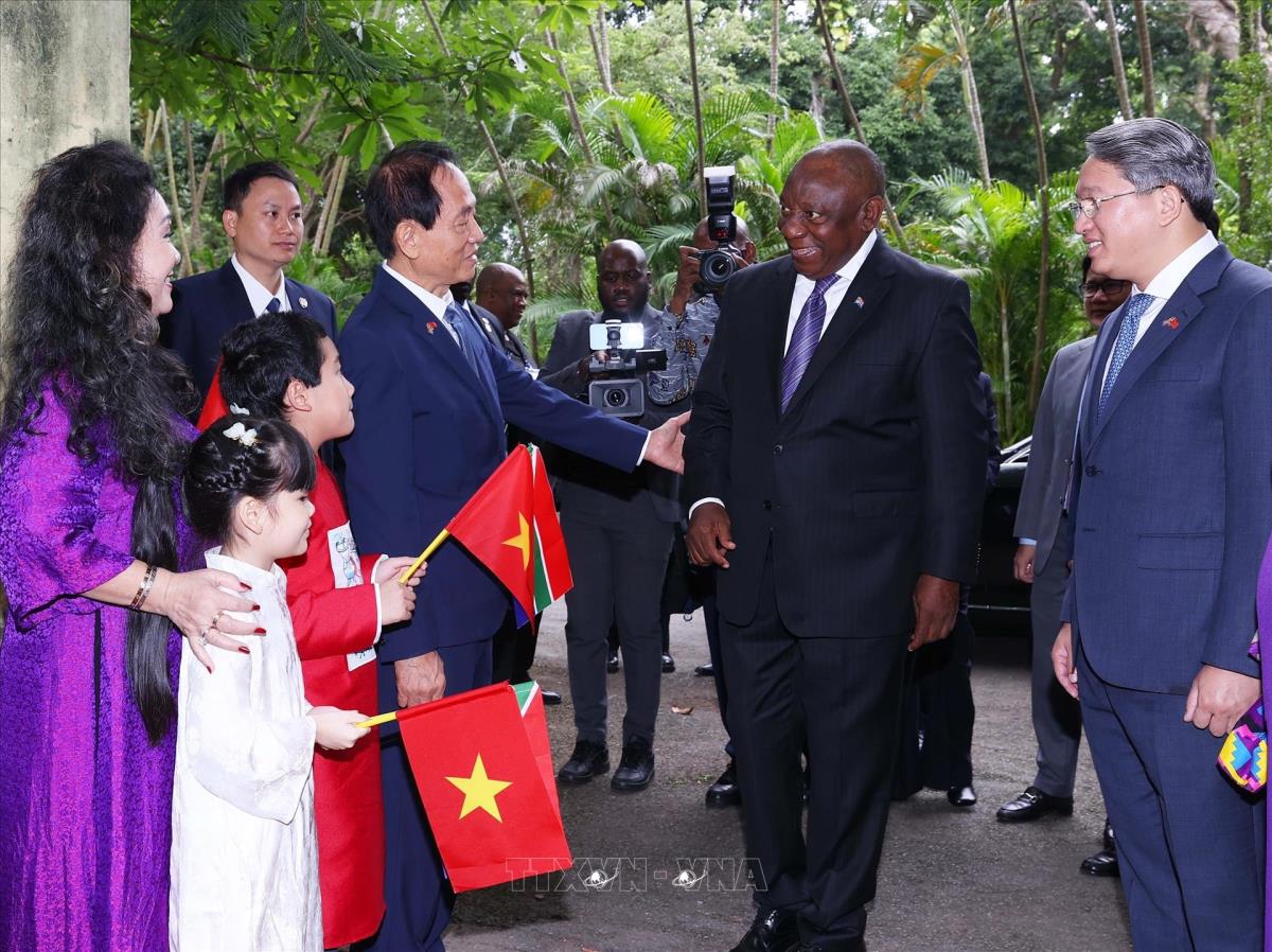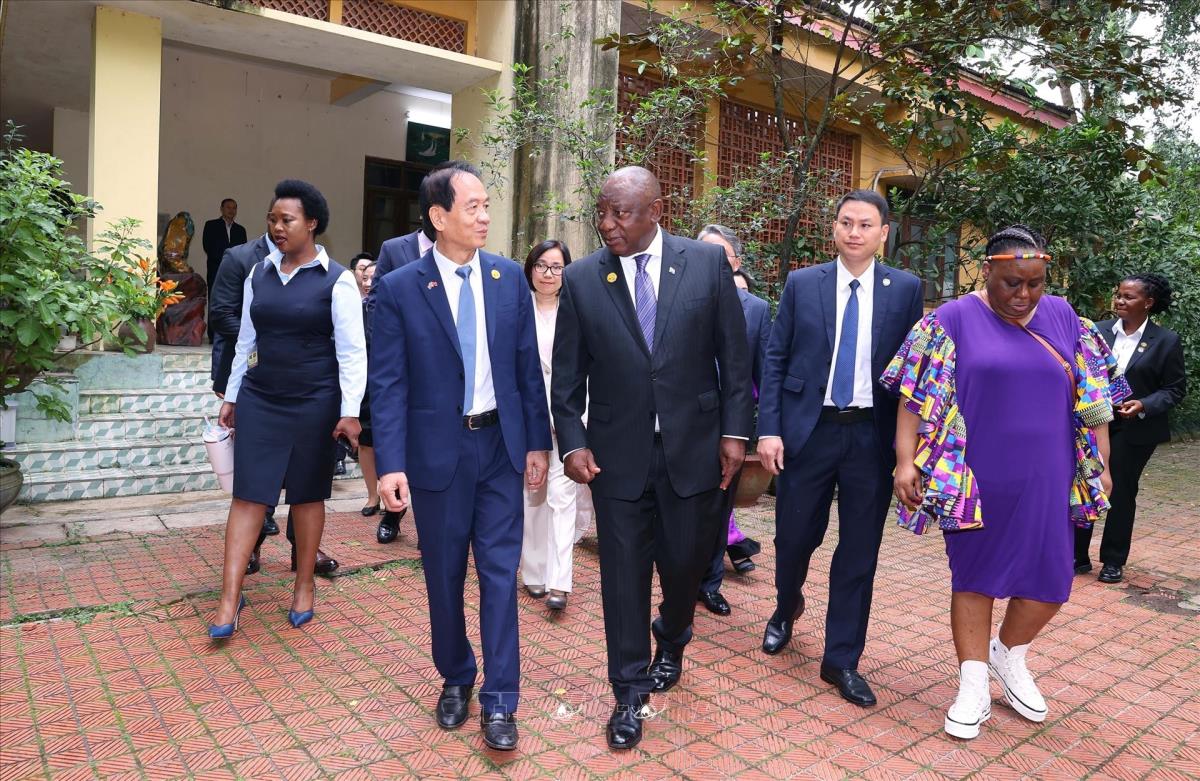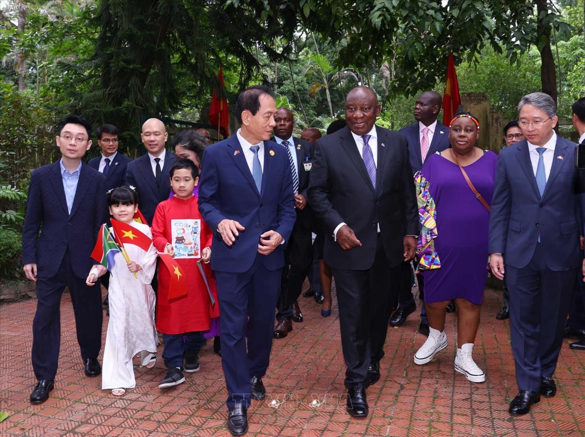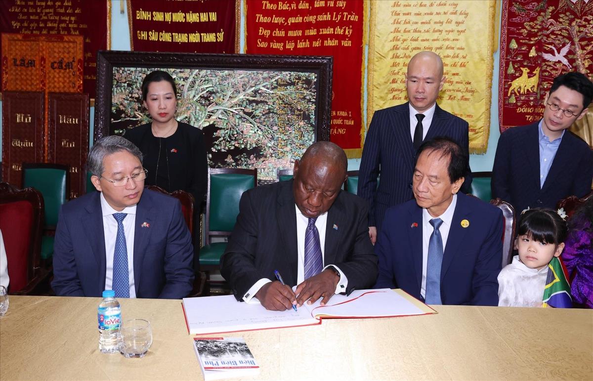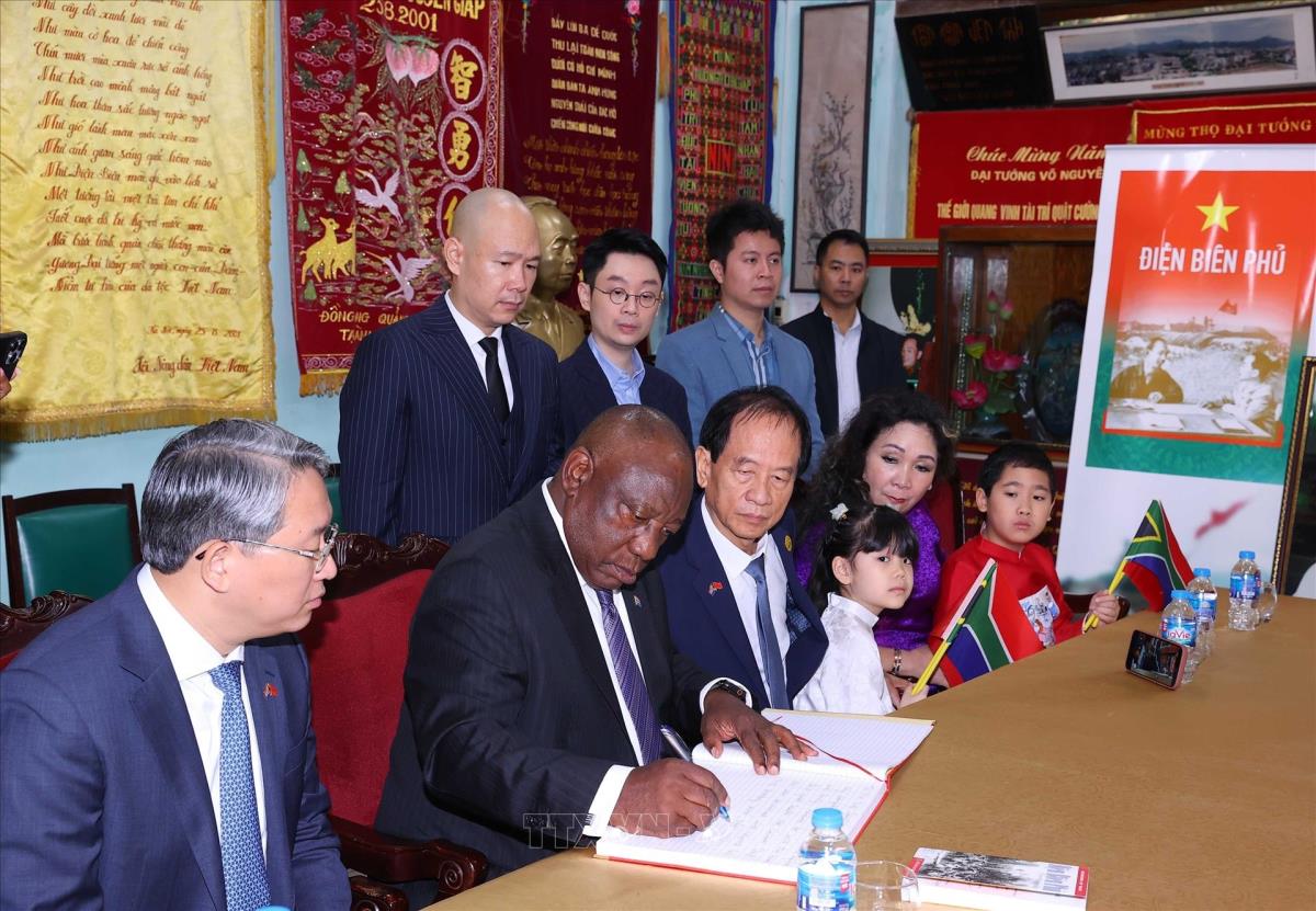 Tổng thống Nam Phi Matamela Cyril Ramaphosa thăm gia đình Đại tướng Võ Nguyên Giáp (24/10/2025). Ảnh: Văn Điệp – TTXVN